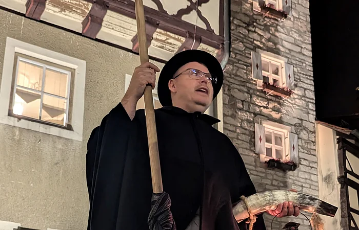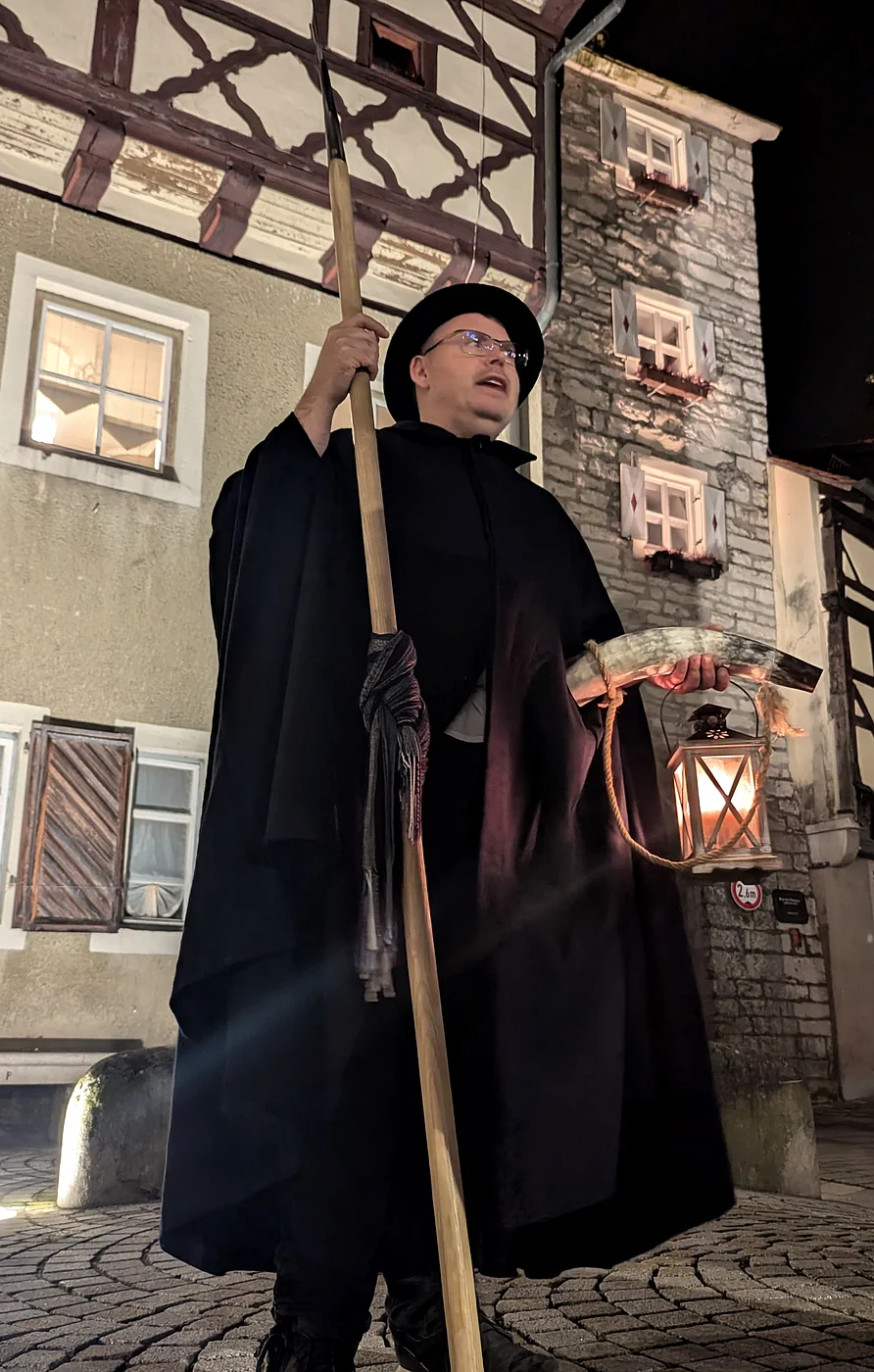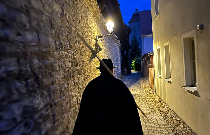 Nachtwächter Martin Kleemann unterhält in historischer Gewandung auf lebendige und anschauliche Art und Weise bei seinem Altstadtrundgang mit Laterne und Hellebarde: Abends, im Laternenlicht, wirken die engen Gassen und alten Gemäuer noch romantischer. Doch war das Leben in der "guten alten Zeit", wirklich immer so romantisch? Tauchen sie mit dem Nachtwächter auch ein in die dunklen Kapitel unserer Vergangenheit, in der Feuersbrünste, Zerstörung durch feindliche Angriffe und der Hass gegen vermeintliche Hexen allgegenwärtig war. Doch auch von heldenhaften Stadtverteidigern, zänkischen Hausfrauen, alltäglichen Toilettenproblemen und verbotenen Liebschaften weiß der Wächter der Nacht trefflich zu berichten! So können Touristen, aber auch Einheimische Berching noch einmal mit neuen Augen und Perspektiven besser kennenlernen.