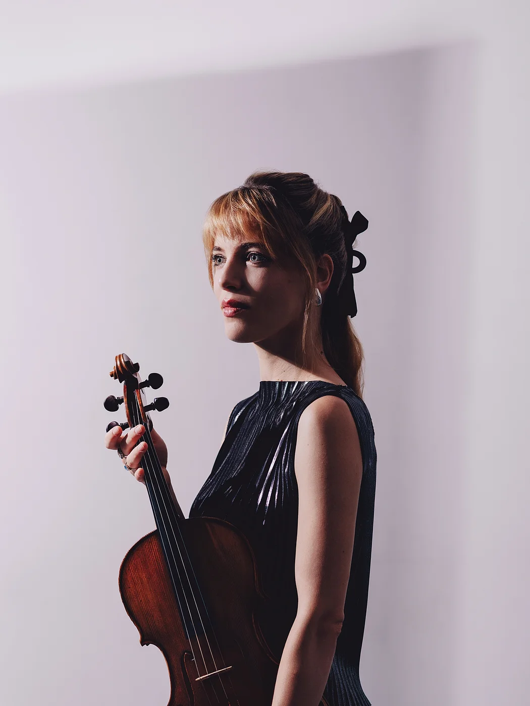 Die Musikerin Violaine Despeyroux mit ihrer Bratsche.Die vier Mitglieder des Quatuor Voce mit ihren Instrumenten.