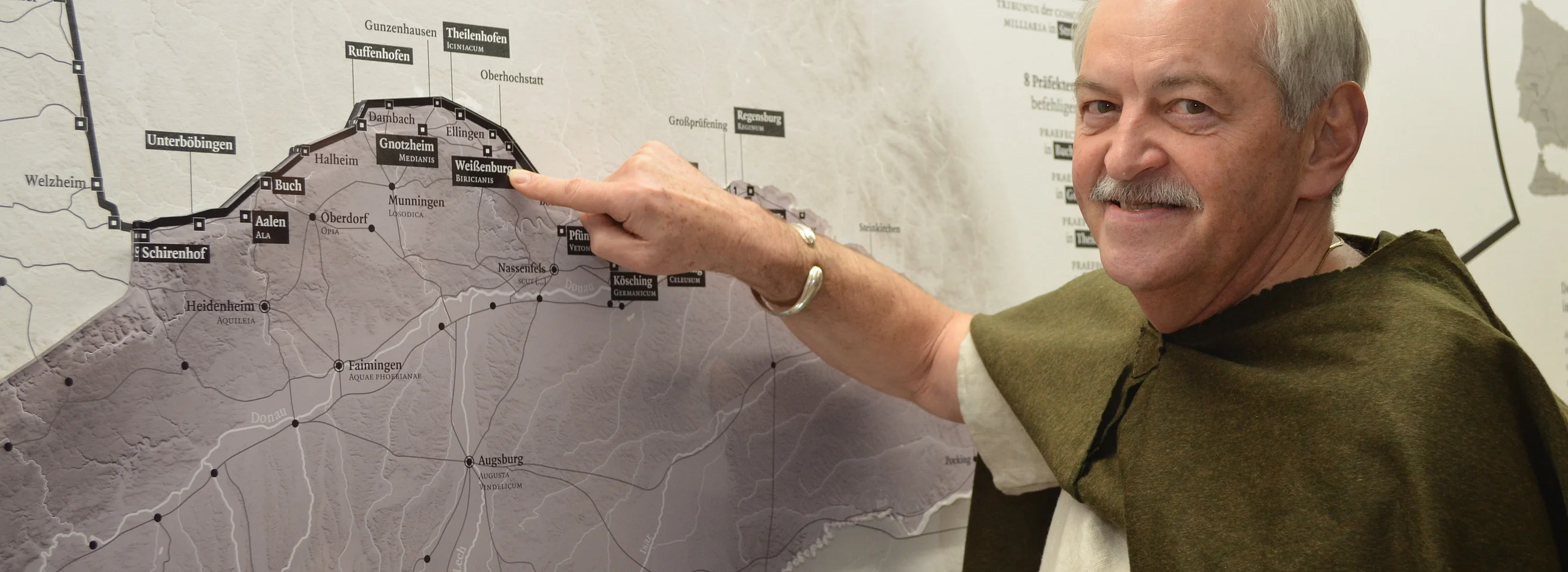 Lucius ist ein römischer Soldat, seine Frau Mania die Tochter eines Händlers. In Begleitung einer dieser Figuren erfahren Besucher des RömerMuseums, wie es sich im Jahr 205 n.Chr. am Limes lebt. Beide verspüren jedoch dunkle Schatten, die über das Land am Limes heraufziehen.