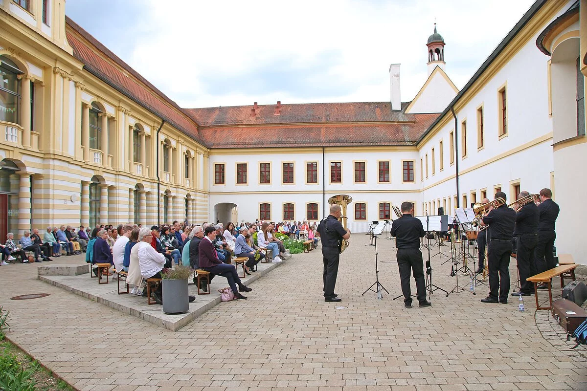 Bläserserenade in Rebdorf - Die Ehemaligen Rebdorfer Bläser veranstalten ihre traditionelle Bläserserenade im barocken Gabrielihof des Klosters Rebdorf.  Der Innenhof der Klosteranlage ist ein wahrer Schatz des Barock, von Gabriel de Gabrieli erbaut. Festliche und schwungvolle Musik kommt vom Brasstett, den Ehemaligen Rebdorfer Bläsern, den Holzbläsern der Rebdorfer Bläser und dem Rebdorfer Bläserchor.  Bei schlechtem Wetter findet die Veranstaltung in der Klosterkirche statt.