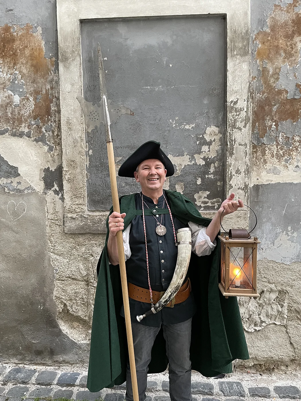Bei seinem Rundgang durch die nächtlichen Gassen erzählt der Nachtwächter Geschichten über die Entwicklung der Stadt, Hausgeschichten und Anekdoten. Ertönt der Ruf seines Horns, dann ist in der Stadt alles in Ordnung. Eine informative wie vergnügliche Zeitreise in die Vergangenheit Eichstätts.