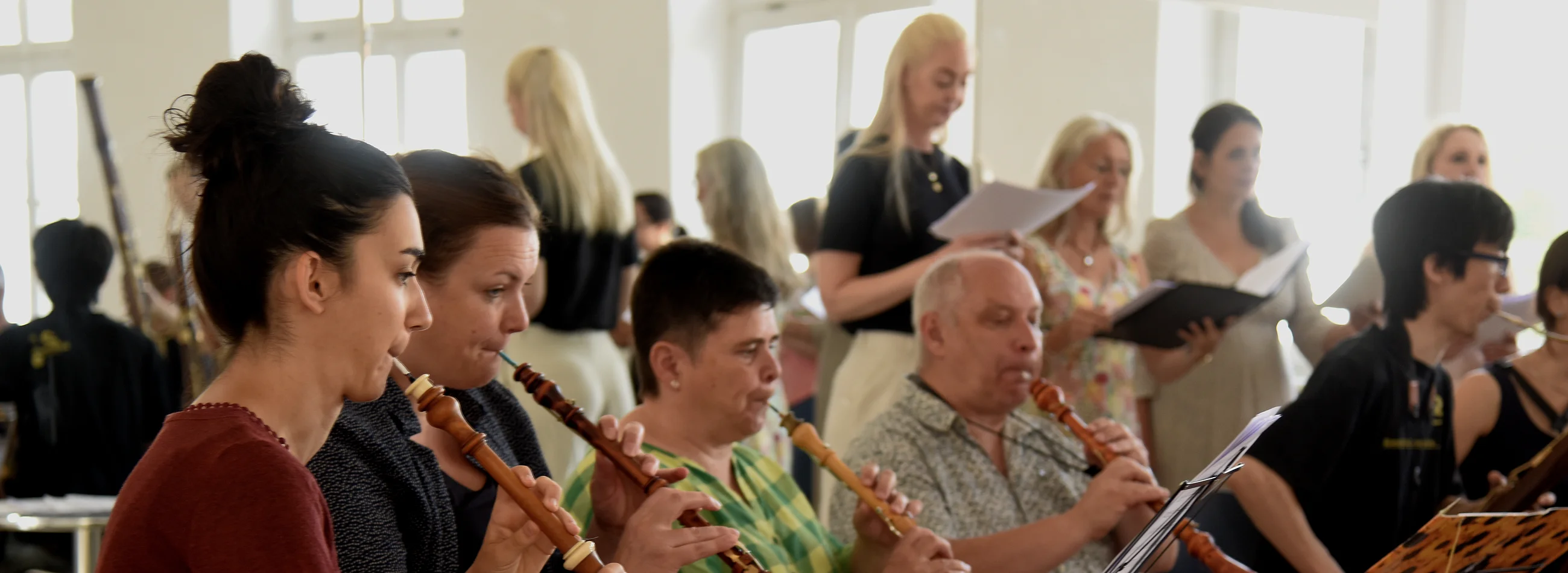 Die diesjährigen Teilnehmer des Kurses für Alte Musik stellen sich in einem gemeinsamen Konzert vor und zeigen Ihr Können auf der Bühne.