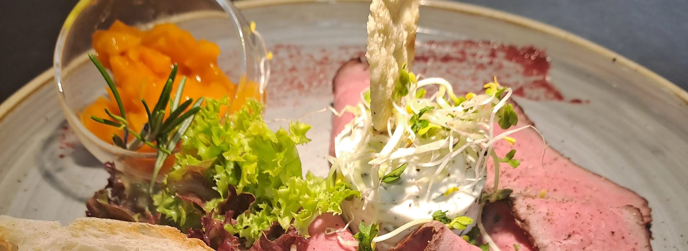 Spezialitäten vom Urdonautaler Auerochsen im Landhotel "Zur Jurahöhe" in Hard bei Wellheim