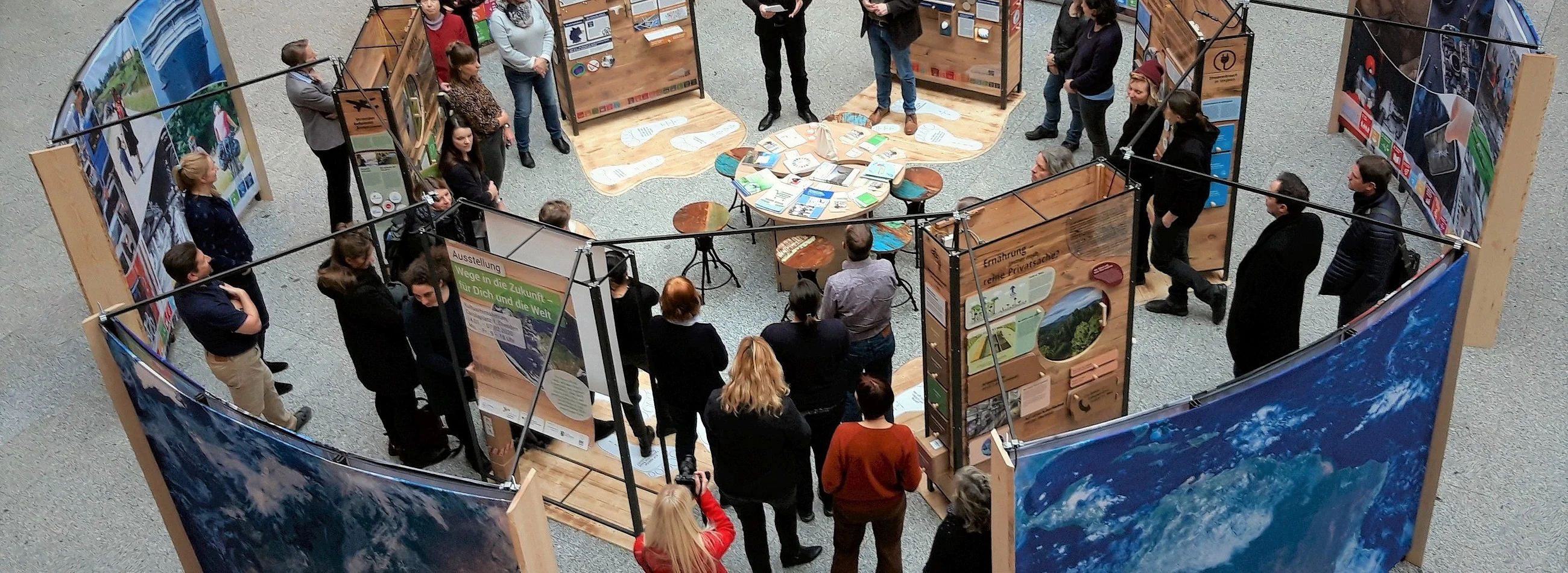 Die Ausstellung zeigt, wie man durch Anpassung des eigenen Verhaltens, aber auch durch politisches und gesellschaftliches Engagement Wege in eine zukunftsfähige Welt einschlagen kann.