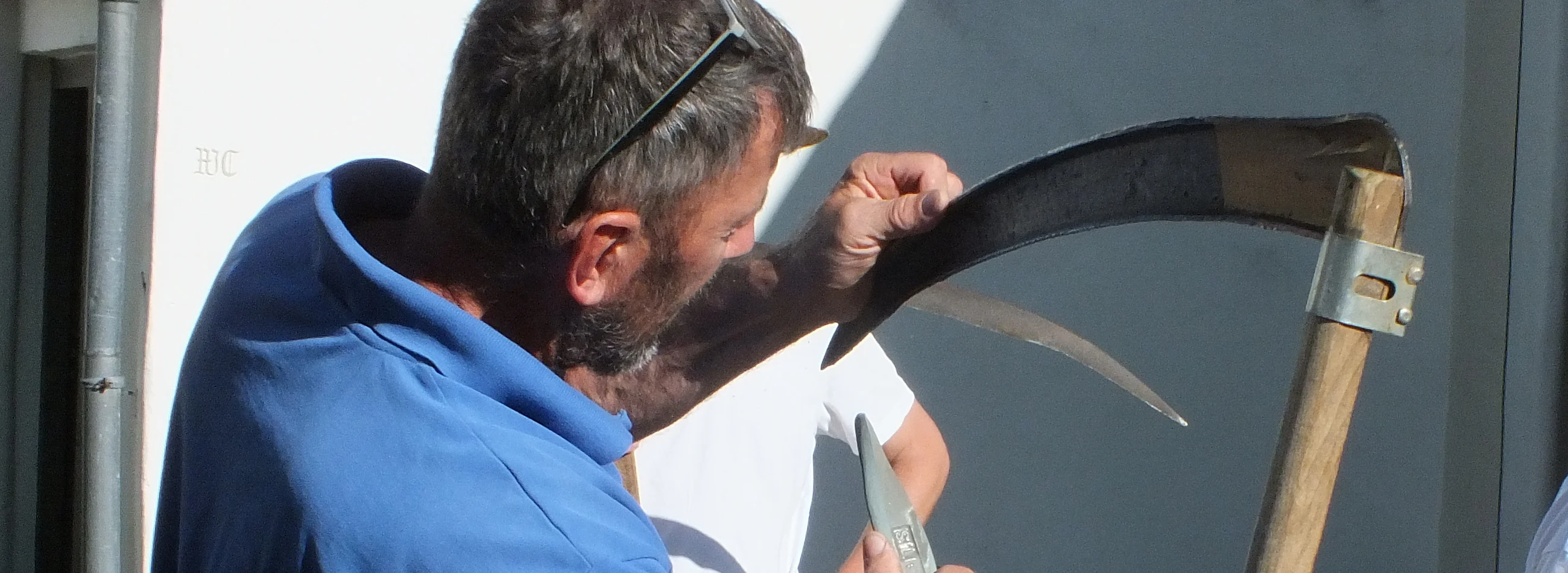 Wer das Mähen mit der Sense und das Dengeln von Grund auf lernen will, den verweisen wir auf Ganztagesveranstaltungen des Sensenvereins.