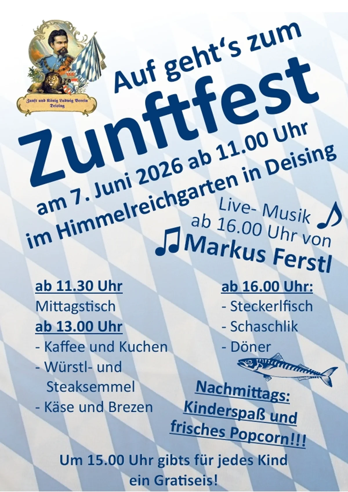 am 07.06.2026 findet wieder das beliebte Zunftfest im Himmelreichgarten in Deising  statt.