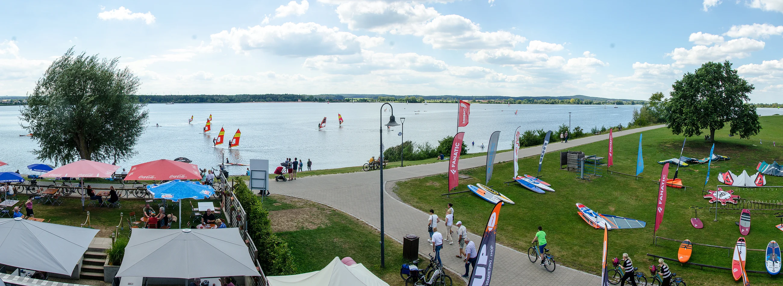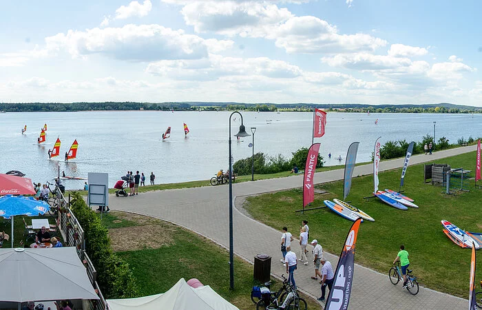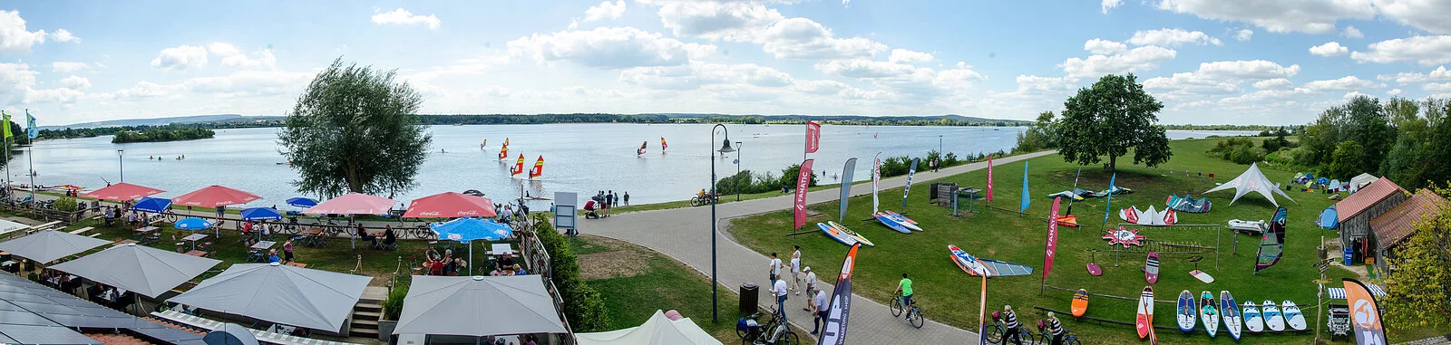 Die Kiter gleiten sportlich über den See und sind Ihrem Element Wasser ganz nah. Die Segel der Kiter färben den See dann in den schillernsten Farben. Dieses tolle Farbentreiben kann wunderbar vom Terassencafé aus betrachtet werden.