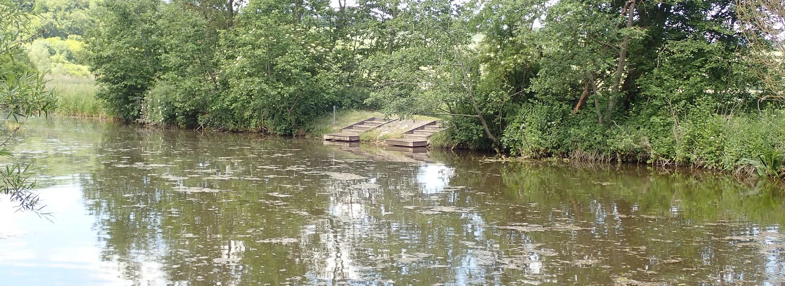 Der Bootsausstieg an der Bubenrother Mühle liegt oberhalb des Wehres. Boote müssen rund 50 m über Land getragen werden. Die Stiege ist mit Holz ausgebaut, um die Boote einfacher aus dem Wasser zu ziehen.