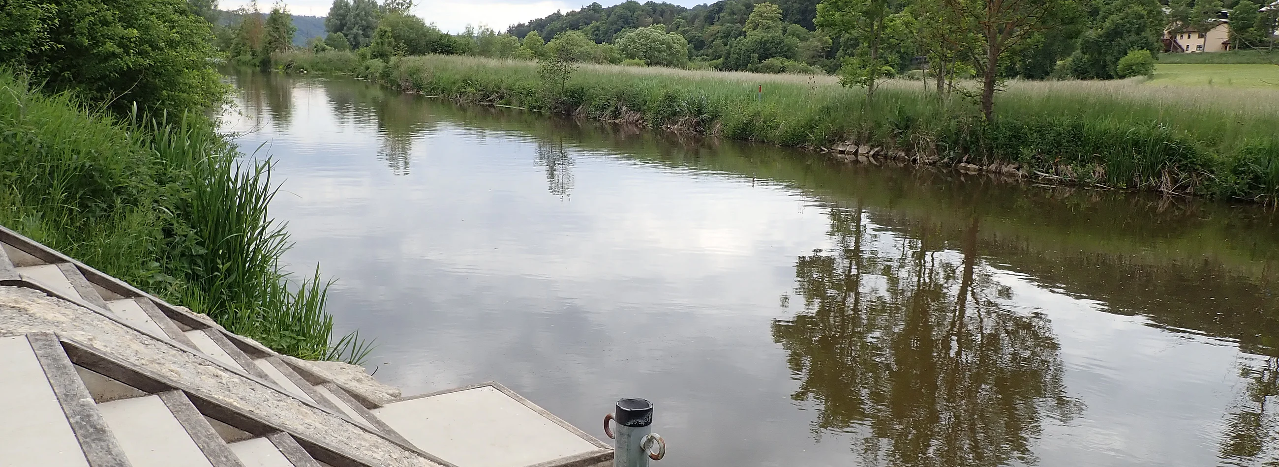 Der Bootsein- und -ausstieg in Inching ist mit stabilen Betonstufen sowie einer praktischen Holzrutsche für Boote ausgestattet. So gelingt das Ein- und Aussetzen komfortabel und sicher – ideal für eine entspannte Tour.