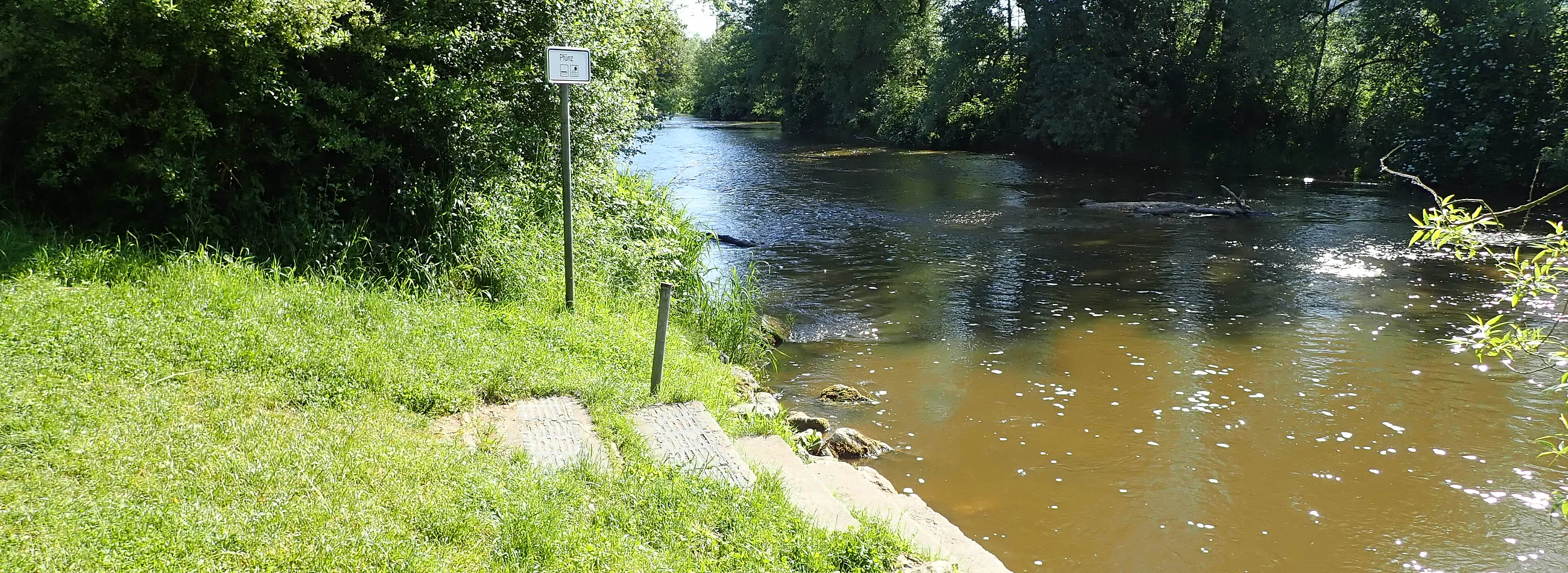 Der Bootsein- und -ausstieg in Pfünz befindet sich direkt an der historischen Römerbrücke. Die idyllische Lage lädt zu einer kurzen Pause ein, denn vor Ort steht auch eine gemütliche Sitzgelegenheit zur Verfügung.