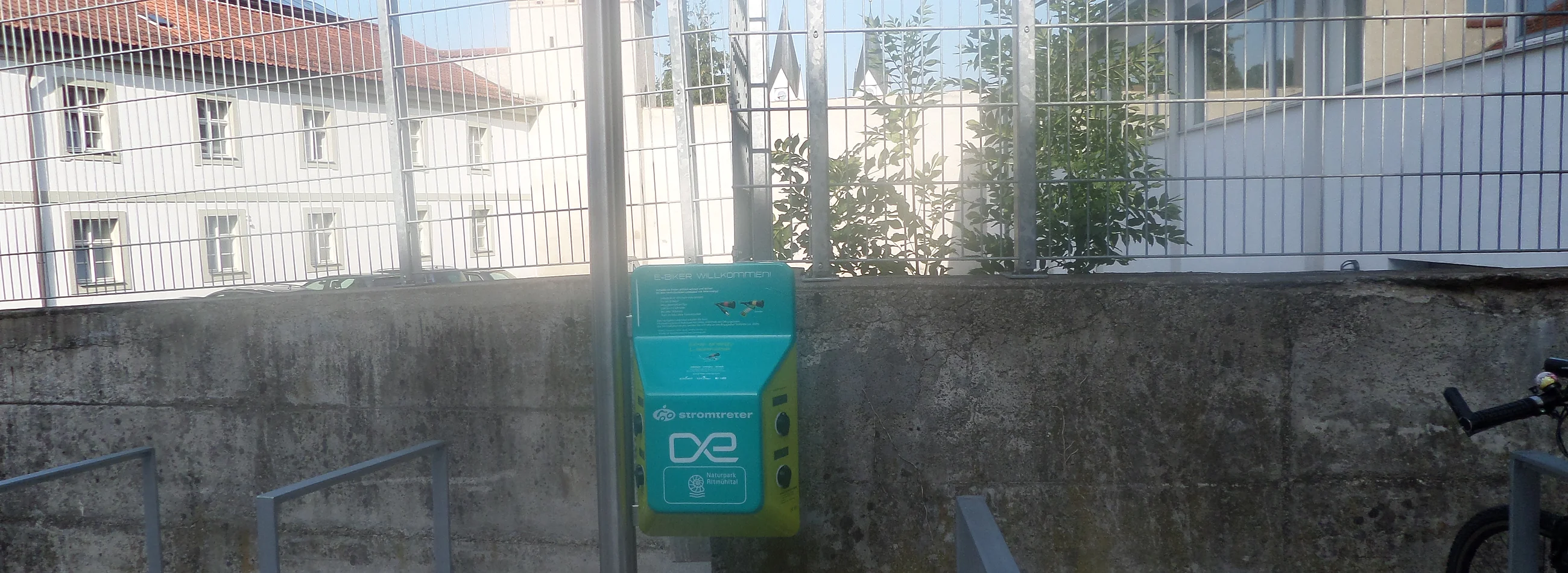 Laden Sie bequem Ihr E-Bike am Kardinal-Preysing-Platz an dem E-Bike-Ladesystem von BikeEnergy. An diesem Ladesystem kann man bis zu 4x schneller laden und der Akku bleibt am Rad versperrt. Das Ladegerät wird nicht benötigt. Mit 4 Steckplätzen und Adapterkabel für folgende Akkus: Bosch 36V Panasonic 26V + 36V Yamaha Impulse Stromer BionX 37V + 48V TranzX 36V Die Ladeadapter - Kabel können während der Öffnungszeiten im Informationszentrum Naturpark Altmühltal ausgeliehen werden. Außerhalb der Öffnungszeiten des Infozentrums erhalten Sie die Adapter - Kabel im Braugasthof Trompete.