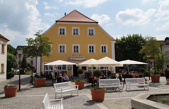 Während das E-Bike auflädt, heißt das Café Lebenskunst die Radfahrer herzlich willkommen. Im Café lässt man sich mit Kaffee und Kuchen, täglich wechselnden Mittagstisch, hausgemachten Waffeln und Crêpes verwöhnen.