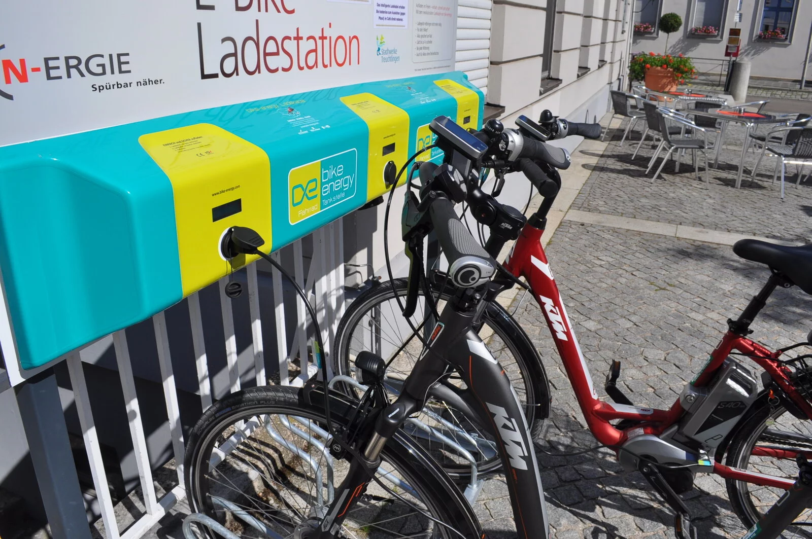 Die Ladestation liegt zentral am Rathausplatz und ist jederzeit frei zugänglich und kostenlos.