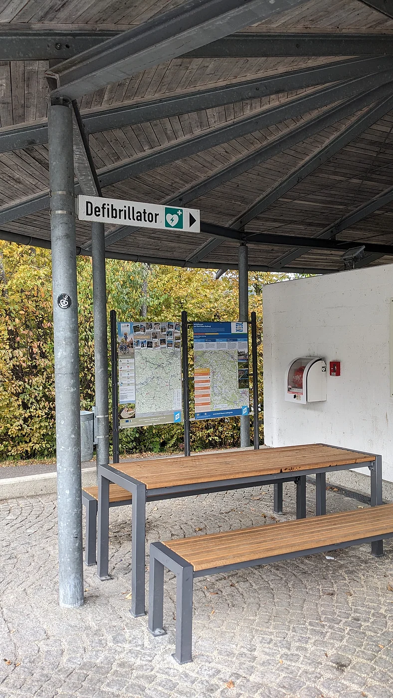 Unter dem Dach am Großparkplatz steht eine Radreparaturstation mit der man die nötigsten Reparaturen an seinem Fahrrad vornehmen kann. Links ist ein Tisch und zwei Bänke für eine kleine Rast.Überdachter Rastplatz mit Holzbänken, Infotafeln und einem Defibrillator an der Wand.Fahrradservicestation mit Werkzeug- und Fahrradsymbol, im Hintergrund Bäume und ein Fluss.In acht, mit eigenem (Fahrrad-)Schloss, abschließbaren Boxen kann Ihr Fahrrad sicher eingeschlossen werden damit einer Erkundungstour in Riedenburg nichts mehr im Wege steht. Ebenfalls finden Sie in vier der acht Boxen Lademöglichkeiten für Ihr E-Bike.An heißen Sommertagen bietet sich die Radstation perfekt für eine Pause im Schatten an.Neben der Fahrradstation am Marktplatz finden Sie zusätzlich eine „Fahrrad-Servicestation“ an der St. Anna Brücke in Riedenburg. Direkt am Radweg am Main-Donau-Kanal steht diese Servicestation rund um das Thema Radfahren für Sie bereit. Damit Sie sich einen ersten Überblick über die Region, verschiedene Rad(rund)touren und Riedenburg verschaffen können, finden Sie an dieser Station Informationstafeln. In acht, mit eigenem (Fahrrad-)Schloss, abschließbaren Boxen kann Ihr Fahrrad sicher eingeschlossen werden damit einer Erkundungstour in Riedenburg nichts mehr im Wege steht. Ebenfalls finden Sie in vier der acht Boxen Lademöglichkeiten für Ihr E-Bike. Als zusätzlicher Service steht Ihnen für kleine Reparaturen eine Fahrrad-Reparatur-Säule zur kostenlosen Nutzung zur Verfügung. Ruhebänke mit Blick auf den Kanal laden zum Entspannen und zum Pause machen ein und runden unsere „Fahrrad-Servicestation“ ab.