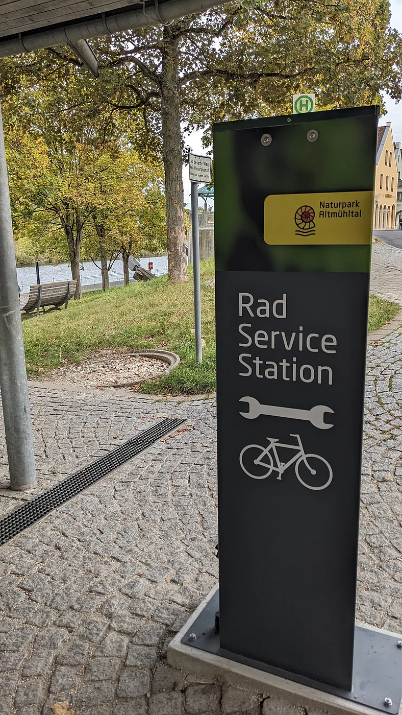 Neben der Fahrradstation am Marktplatz finden Sie zusätzlich eine „Fahrrad-Servicestation“ an der St. Anna Brücke in Riedenburg.