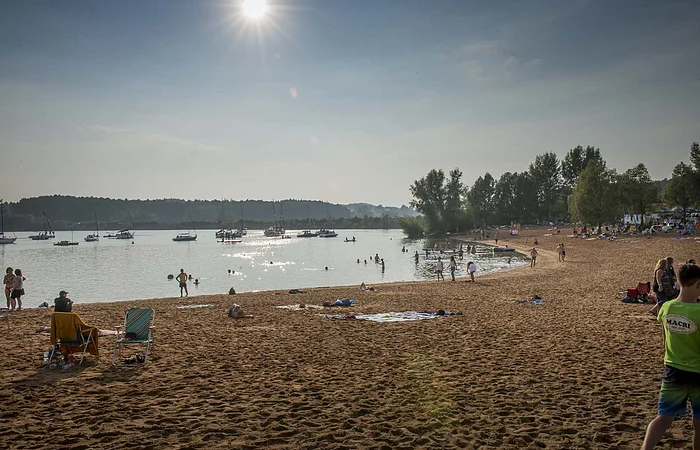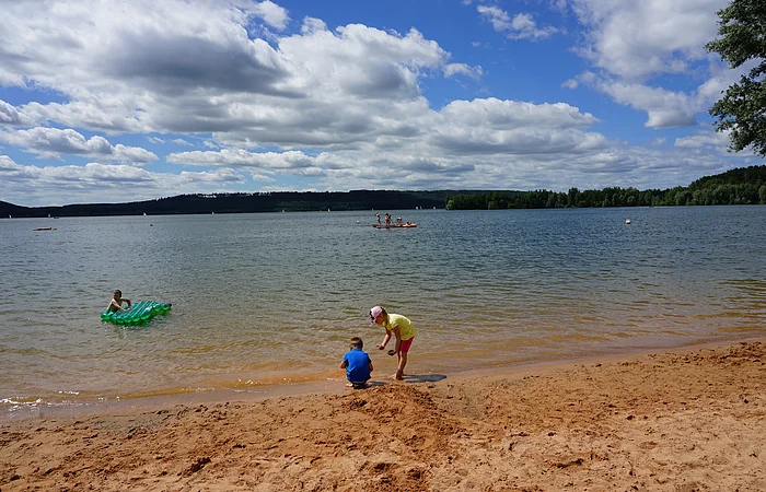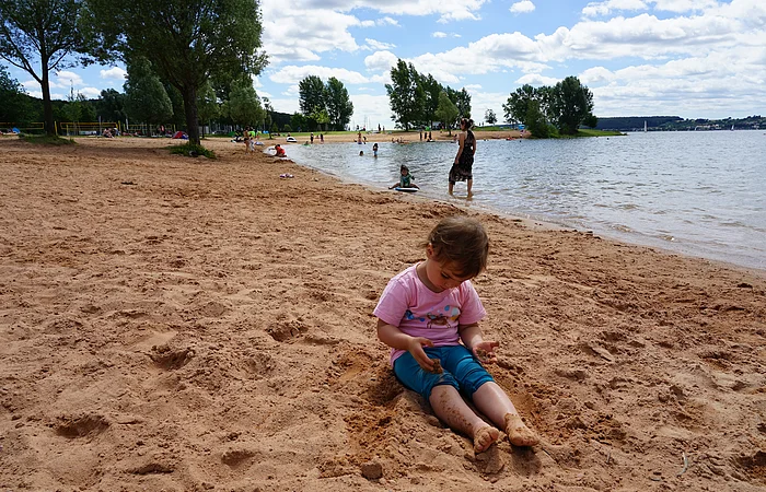 Mit Sandstrand – am Nordufer des Großen Brombachsees.