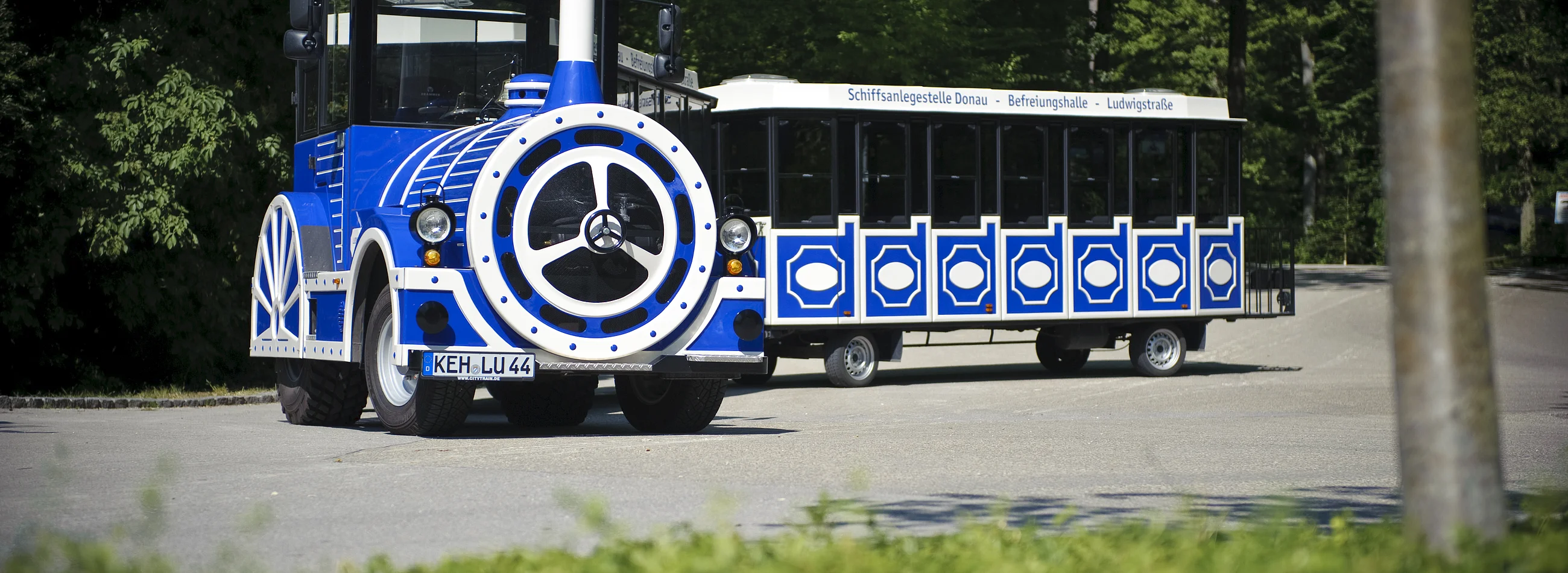 Genießen Sie die bequeme Fahrt mit der Ludwigsbahn von der Schiffsanlegestelle Kelheim/Donau über die wunderschöne Altstadt, den Michelsberg hinauf, zur imposanten Befreiungshalle. Erfahren Sie während der Fahrt Spannendes über die Geschichte Kelheims und viel Wissenswertes zur Befreiungshalle.