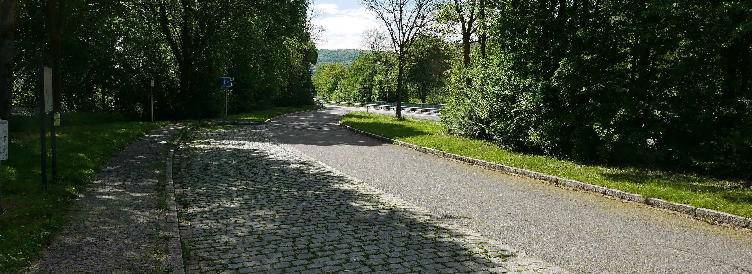 Parkplatz Nähe Kunstweg an Fels und Fluss