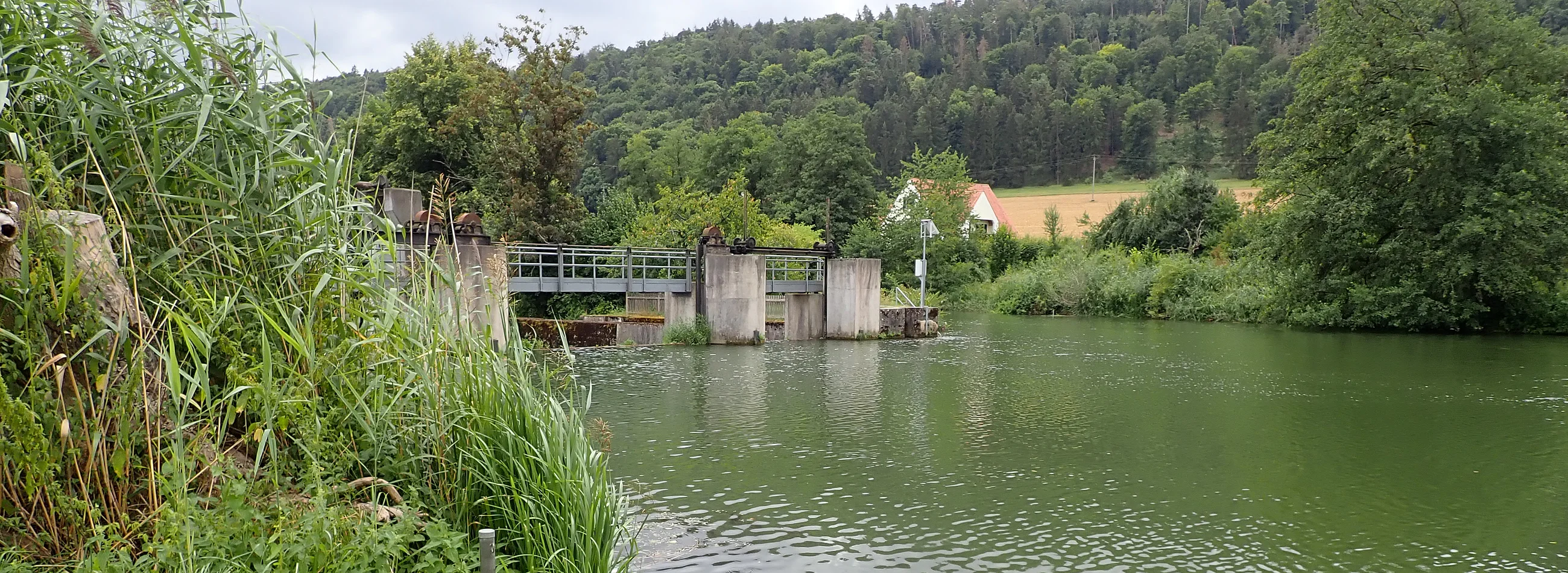 Das Wehr bei Flusskilometer 37,8 an der Mühle mit Ausstieg auf der linken Seite.