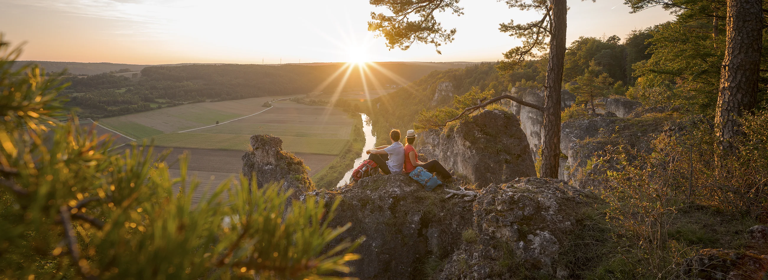 Beim Wandern im Naturpark Altmühltal entdeckt man schroffe Dolomit-Felsen, sonnenüberflutete Wacholderheiden, sanfte Flusstäler, ausgedehnte Wälder – und darüber hinaus noch eine geschichtsträchtige Kulturlandschaft.