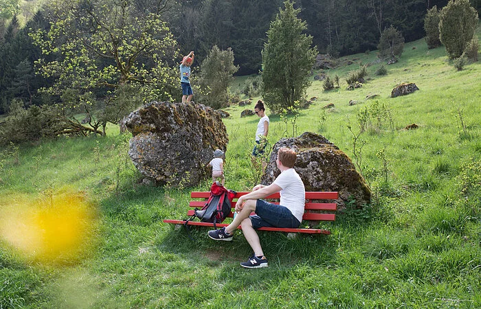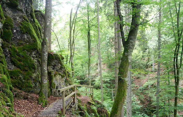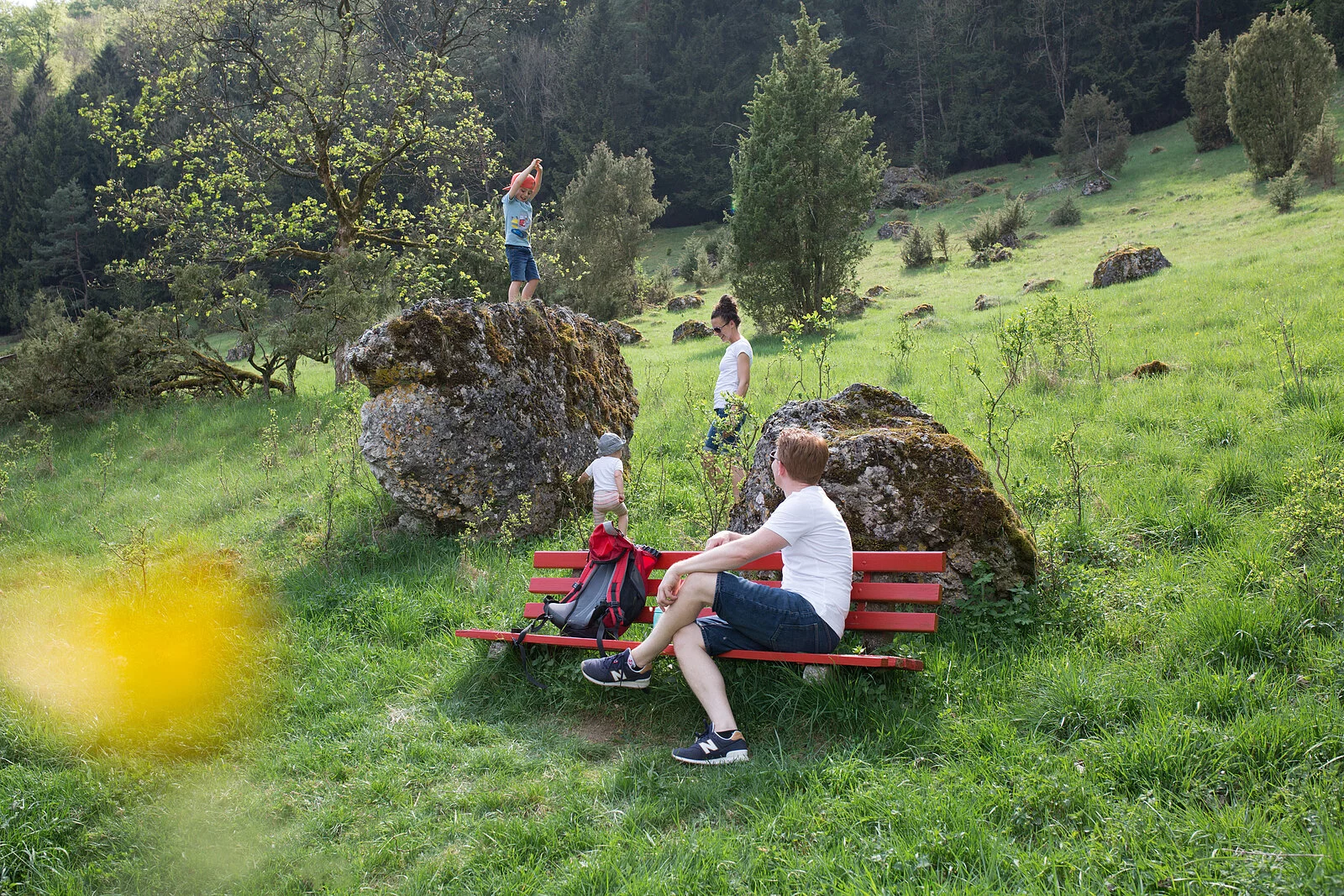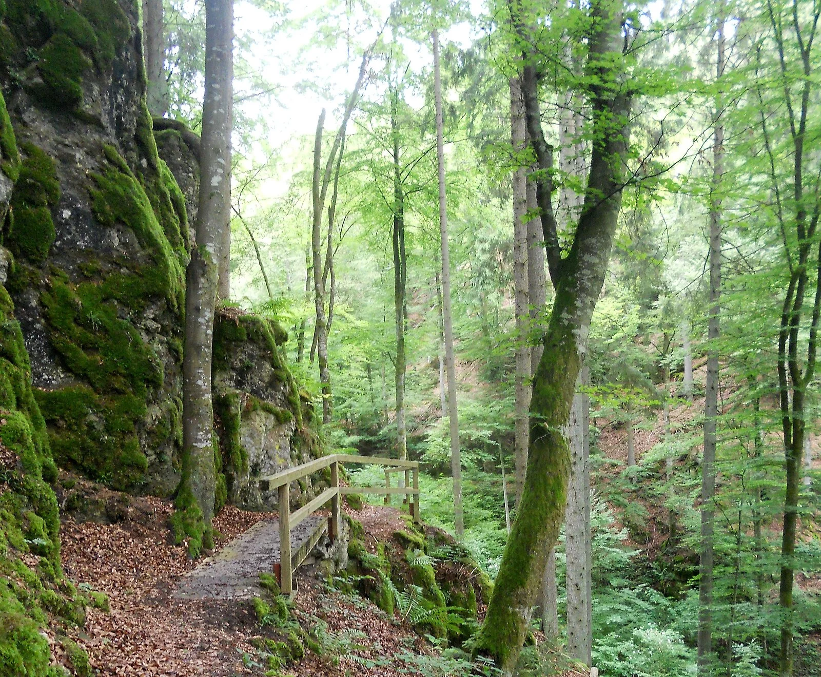 Der gut ausgeschilderte Weg führt zunächst durch die Talsohle des Birktals vorbei an der Tennisanlage, bis wir den Wanderparkplatz im Birktal erreichen. Wir folgen dem Weg bergauf in den Wald und biegen dann rechterhand auf den Mühlenweg (Schlaufe 16 des Altmühltal-Panoramaweges) ab. Auf schmalen Pfaden entlang der Hangkante geht es durch lichten Wald vorbei an Felsformationen, bis wir die Aussichtskanzel erreichen, von der wir einen tollen Blick auf die Wacholderhänge im Birktal genießen können. Das Waggerlloch, eine kleine begehbare Höhle, findet sich gleich gegenüber. Hier wurden Gegenstände aus der Frühbronze-, Urnenfelder-, Hallstatt- und Keltenzeit, aber auch Hinweise, dass die Höhle noch im Mittelalter zeitweise dem Menschen als Zuflucht diente, gefunden. Der Sage nach führte von hier einst ein unterirdischer Gang zur Burg Arnsberg. Über Wurzelstöcke und an Felsformationen vorbei geht es auf schmalen Pfaden und Treppenstufen schließlich bergab, bis wir unseren Ausgangspunkt erreichen.