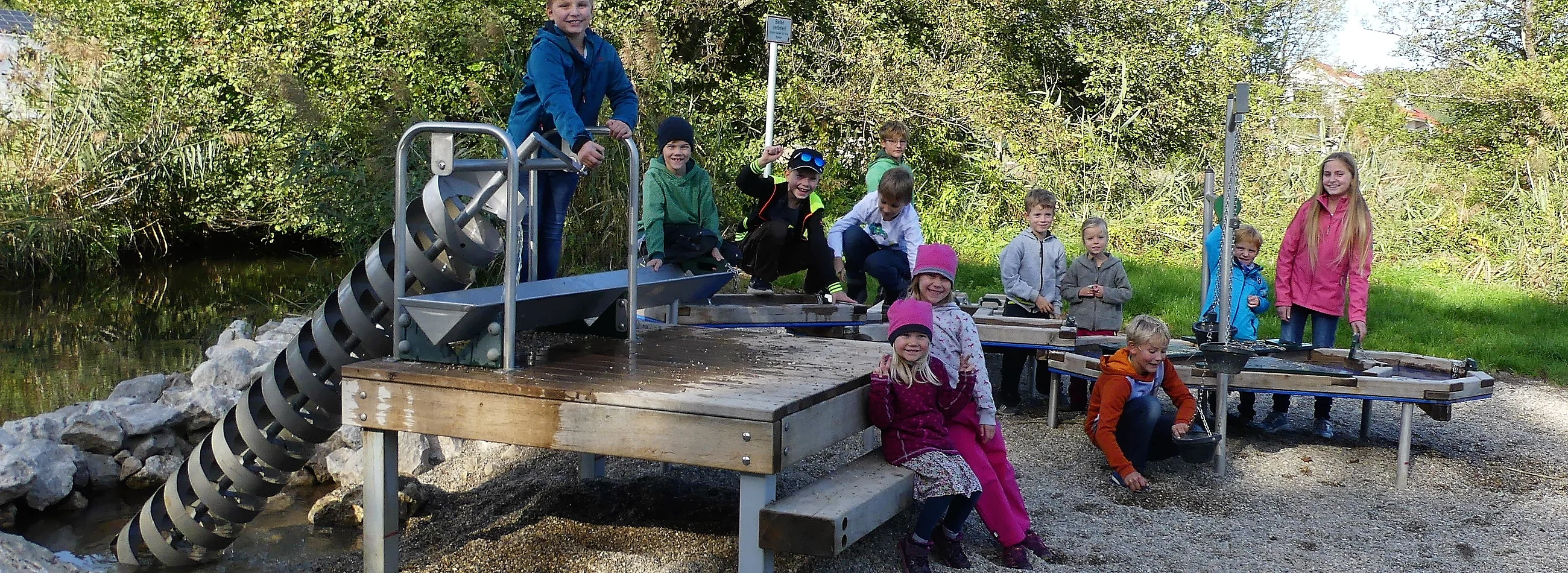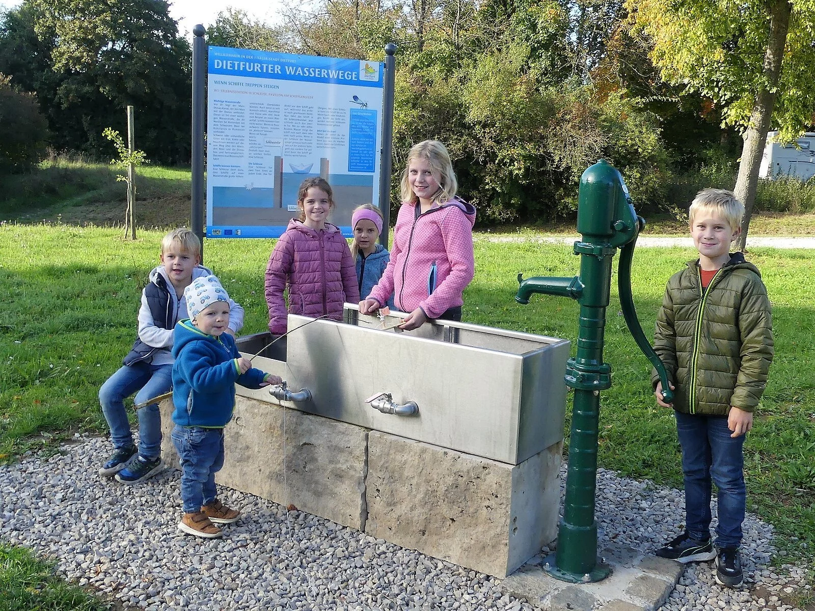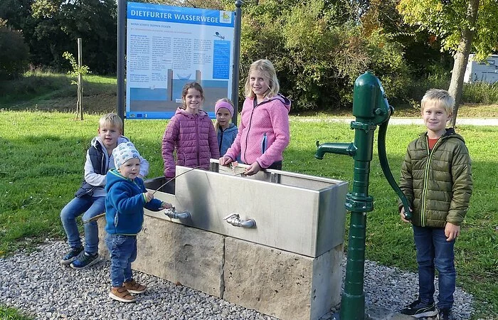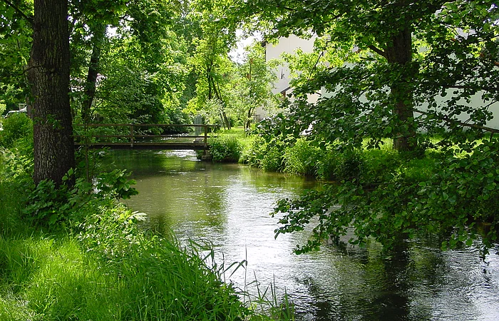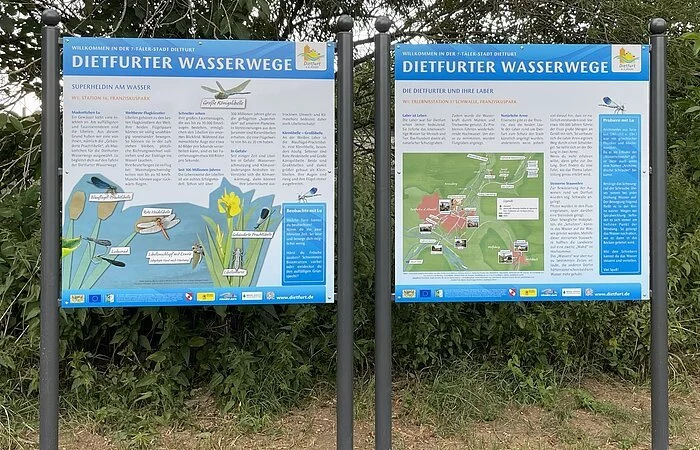 Der Weg "Stadt & Wasser" führt entlang der Stadtlaber über die Dolung zum Laberweiher und zum Franziskuspark. Drei neue Erlebnisstationen für Kinder und sechs Infotafeln befinden sich an der Strecke. Außerdem liegen direkt am Wanderweg W1 auch der Barfußpark und die Kneippanlage.