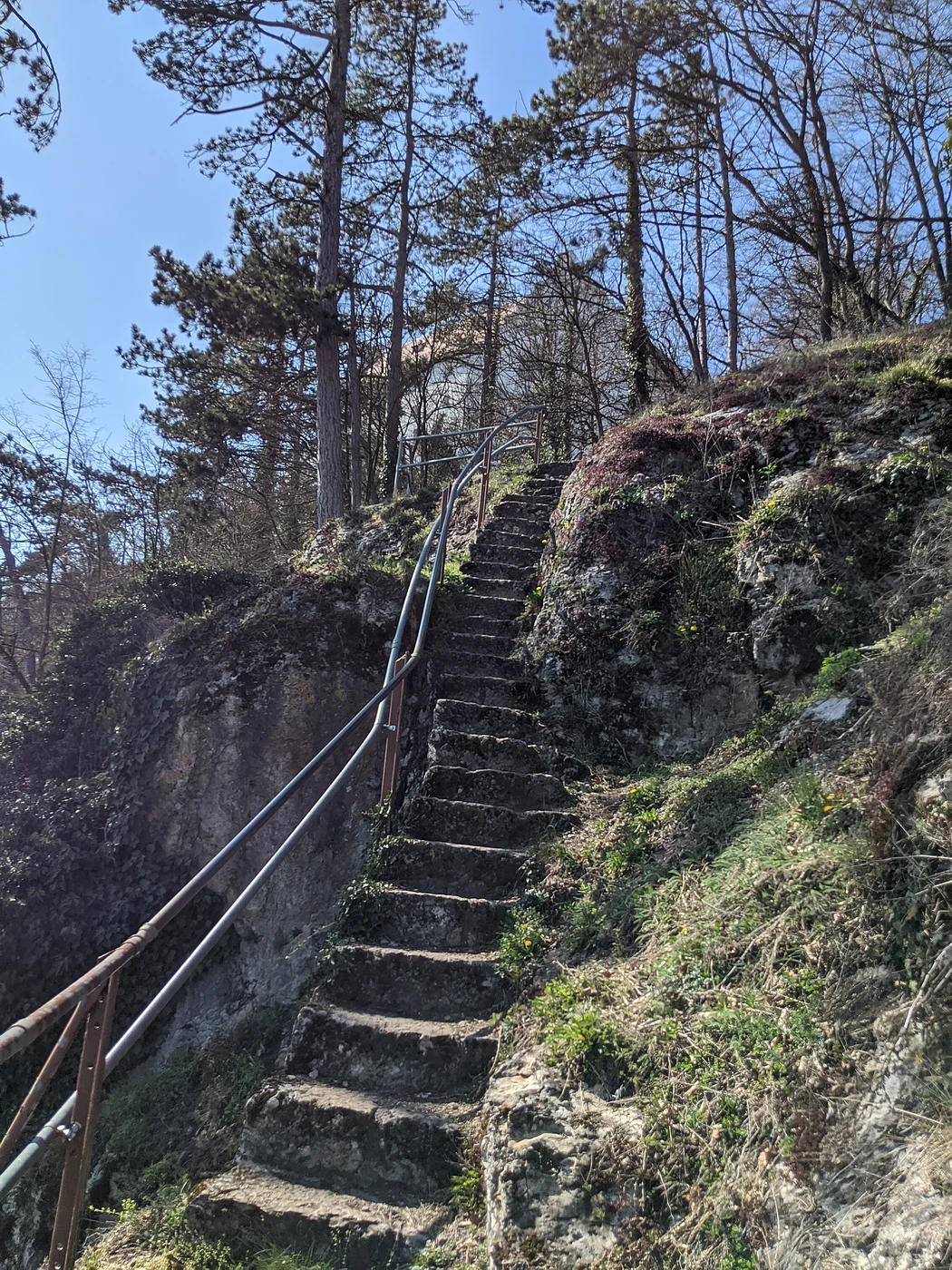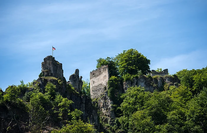 Ihre Tour starten Sie an der Tourist-Information Riedenburg und folgen zunächst der Austraße ca. 500 Meter. An der Informationstafel biegen Sie links ab und folgen dem Weg bis zum Holzritter. Hier biegen Sie erneut links ab und wandern weiter über Serpentinen am Kreuzfelsen vorbei bis zur Burgruine Tachenstein. Von hier können Sie den Blick über die Stadt schweifen lassen und den Ausblick genießen. Danach folgen Sie weiter der Wanderwegmarkierung bis Sie zu einem Abstieg mit Stufen gelangen. Diesem folgen Sie bis zur Burgstraße, die Sie überqueren und dann weiter auf dem Drei-Burgen-Steig bis zur Rosenburg wandern. Sofern Sie gegen 11 oder 15 Uhr dort ankommen, haben Sie die Gelegenheit, sich die Flugshow der Greifvögel anzuschauen. Aber auch sonst lohnt sich der Besuch der Rosenburg, denn Sie können sich die Greifvögel im Burghof anschauen oder besuchen das Museum. Danach wandern Sie am Parkplatz vorbei und biegen dort beim Holzritter erneut links ab und folgen dem Weg, der am Fuß der Rosenburg entlang führt. Danach beginnt über einige Stufen der Aufstieg zur Burgruine Rabenstein, von der Sie erneut einen unvergesslichen Ausblick auf Riedenburg genießen können. Zurück geht es über den Stufenweg und danach erfolgt der Abstieg zum Ausgangspunkt der Wanderung, indem Sie rechts abbiegen und den Treppen folgen.