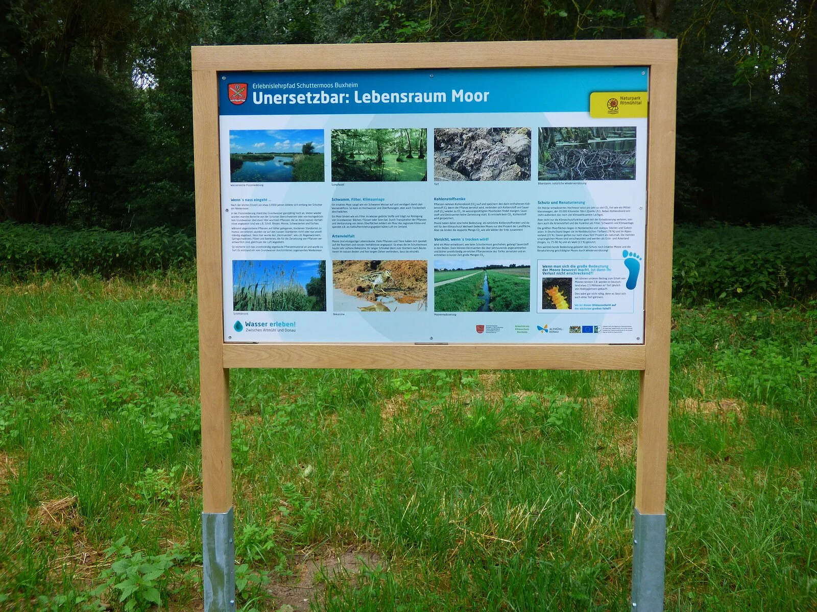 Auf dem Erlebnislehrpfad Schuttermoos Buxheim mit einer Länge von 2 km befinden sich viele interessante Punkte und verweisen auf Infotafeln und interaktive Objekte mit spezifischen Themen, wie Hydrologie, Moore, Geologie und Vegetation. Zusätzlich bietet der Pfad herrliche Sitzmöglichkeit zum Verweilen und Entspannen in der Natur.