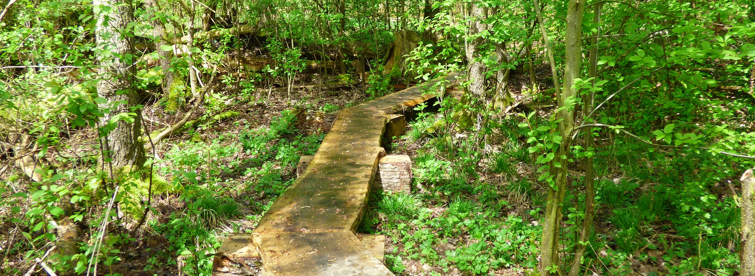 Weiter führt eine zweite Schleife auf dem bestehenden Weg um den westlichen Auweiher. Dort erhalten Sie mithilfe des aufgezeigten Stegs einen zauberhaften Einblick in die heimische Unterwasserwelt. Nach einem Einblick in das Wassererlebnis führt der Weg durch den Wald zurück zum Ausgangspunkt.