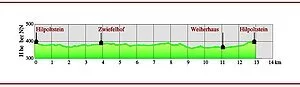 Hilpoltstein, E-Center – Kanalbrücke – Seezentrum Heuberg – Rothsee – Zwiefelhof – Schleuse Eckersmühlen – Haimpfarrich – Weiherhaus – Hilpoltstein