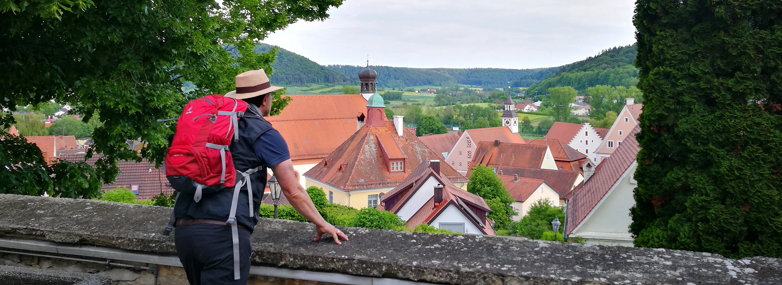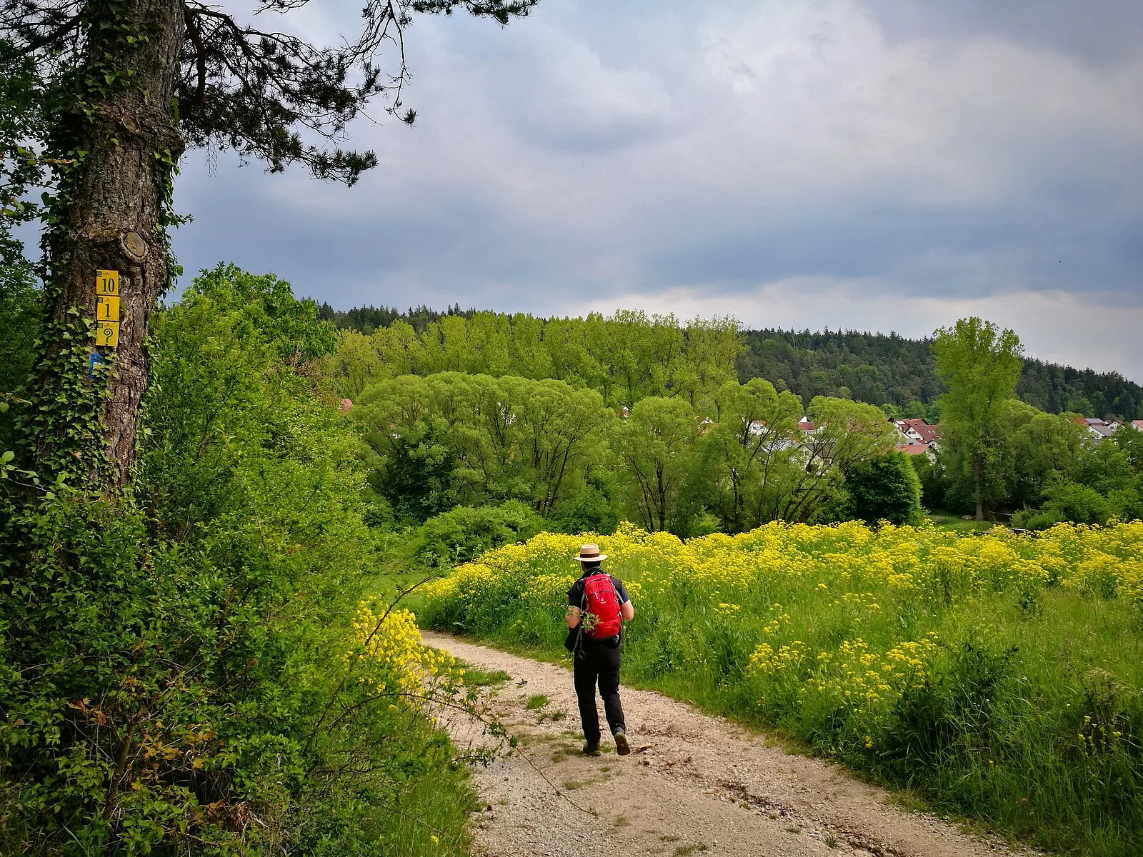 Landschaftlich beschenkt diese Etappe mit Kostbarkeiten wie dem Kaisinger Tal, der Haunstetter Wacht, dem Heimbachtal oder mit einem herrlichen Rundblick vom Euerwanger Bühl. Dazwischen liegt lebendige Dorfgeschichte und lange Tradition der Mutter-Anna- und der Marienwallfahrt. Das Etappenziel Altdorf liegt im malerischen Anlautertal.
