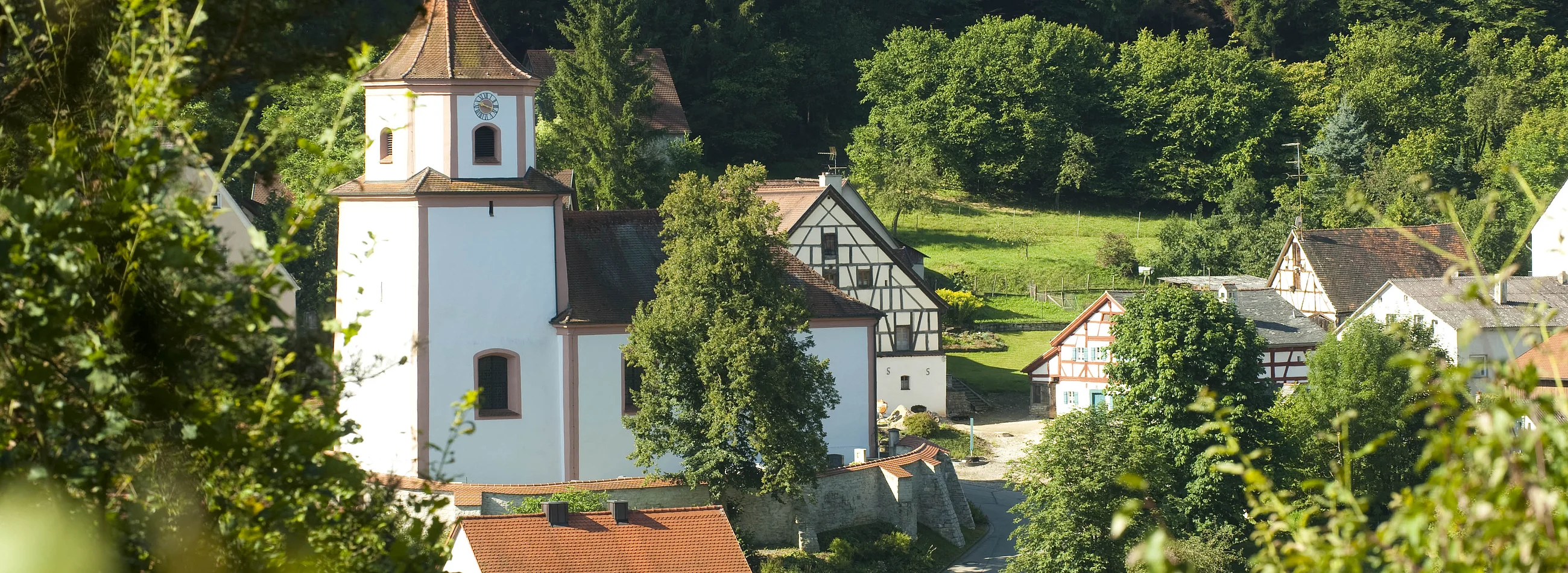 Der unbeschwerliche und besinnliche Rundweg führt vorbei an zehn zentral gelegenen Bildstöcken, Feldkreuzen, einer Grotte und Kapelle, die zu andächtigem Verweilen einladen. Vom Kapellenbildstock oberhalb des Gasthauses Gmelch führt der Wanderweg entlang des Waldes Richtung Kraftsbuch zum Flurkreuz, das 1972 erneuert wurde. Nach einer Wegstrecke wird die Straße nach Euerwang überquert und trifft auf einen Kapellenbildstock. Der Wanderweg führt zurück über sämtliche Bildstöcke und Feldkreuze, Kapelle und Grotte zum Ausgangspunkt.