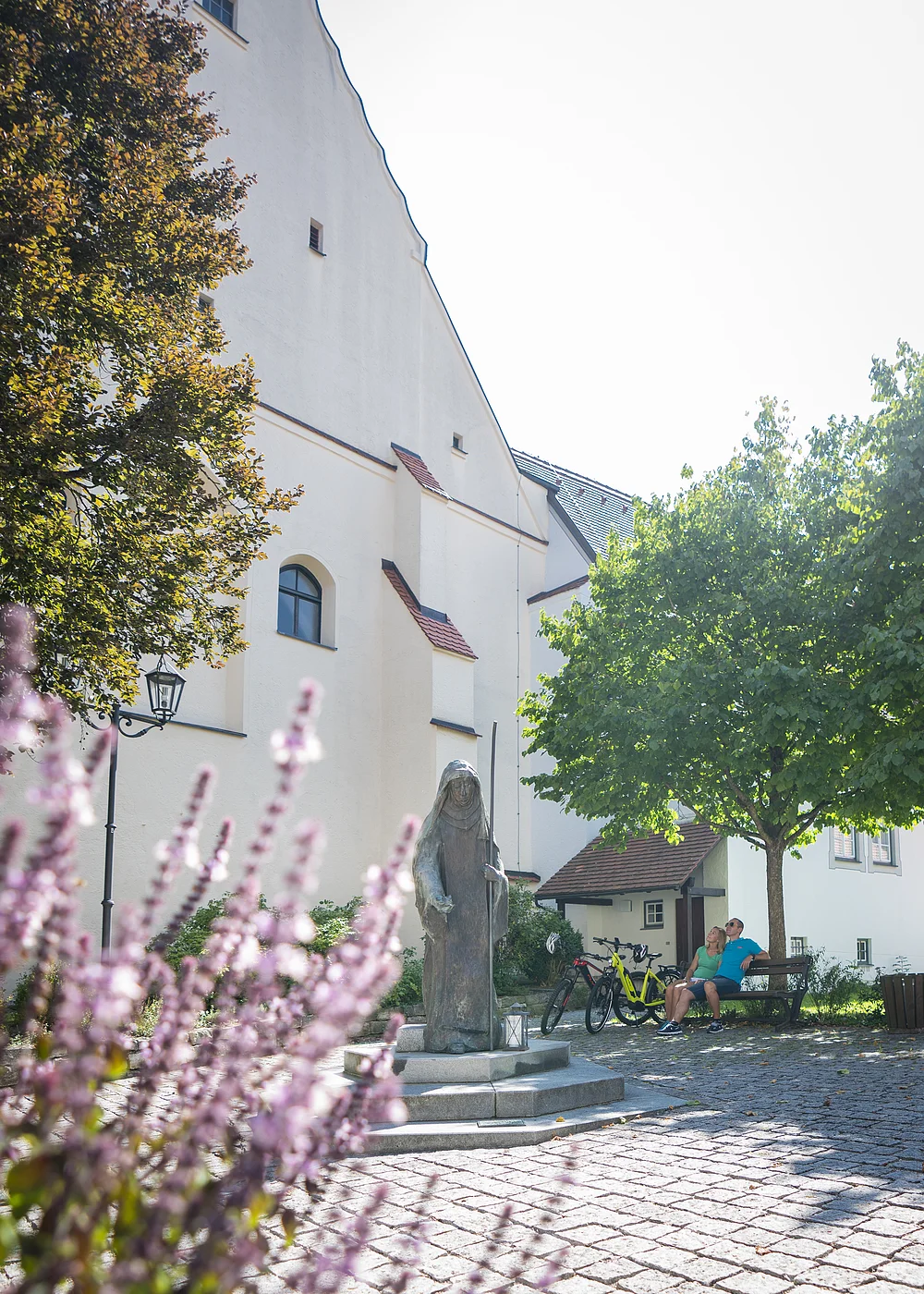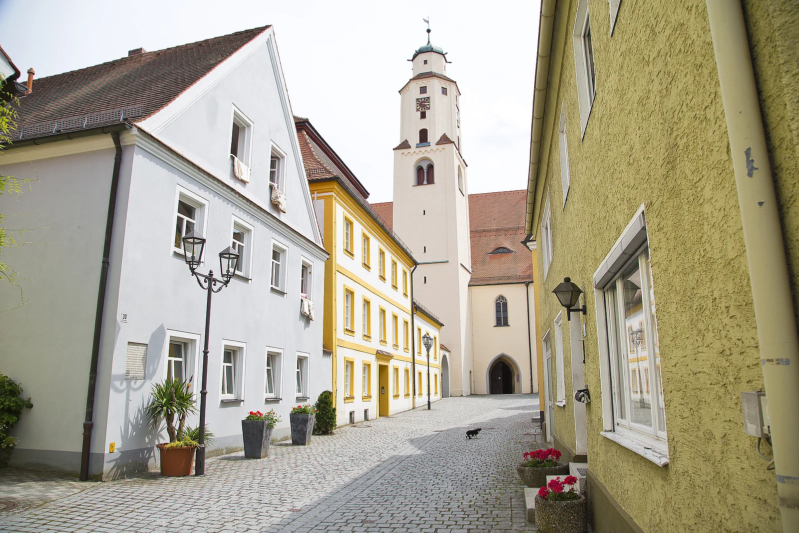Auch die Stadtpfarrkirche, ein spätgotisches Bauwerk von 1509, sowie die Überreste des Benediktinerinnenklosters aus dem 9. Jahrhundert lohnen einen Besuch. Ein kurzer Aufstieg führt zur Brandkapelle, die 1851 als Dank für die Verschonung Monheims vor einem verheerenden Waldbrand erbaut wurde. Der angrenzende Kreuzweg lädt zur Besinnung und einer kleinen Rast ein. Weiter geht es zu einem Teilstück des Themenpfads „Zukunftswald Monheim“. Im weiteren Verlauf des Wanderwegs gelangen wir zu einer Ringwallanlage, deren Geschichte bis ins 5. Jahrhundert v. Chr. zurückreicht – davon zeugen Funde wie eine hallstattzeitliche Paukenfibel und mittelalterliche Mauerreste. Weiter geht es zur Ortschaft Ried. Von der Rieder Höhe genießen wir im Anschluss die idyllische Aussicht auf das Gailachtal. Der Weg führt talwärts über die Gailach und vorbei an der Monheimer Kläranlage, die mit innovativer Technologie zur Reinhaltung des empfindlichen Karstgebiets beiträgt. Zurück in Monheim passieren wir die kleine Peterskapelle, die von der frühen Besiedlung im 8. Jahrhundert zeugt, und erreichen schließlich die ehemalige „Lutherherberge“. Hier fand Martin Luther 1518 Schutz, nachdem er Augsburg fluchtartig verlassen musste: ein spannender Abschluss für unsere Wanderung durch Natur und Geschichte der Region.