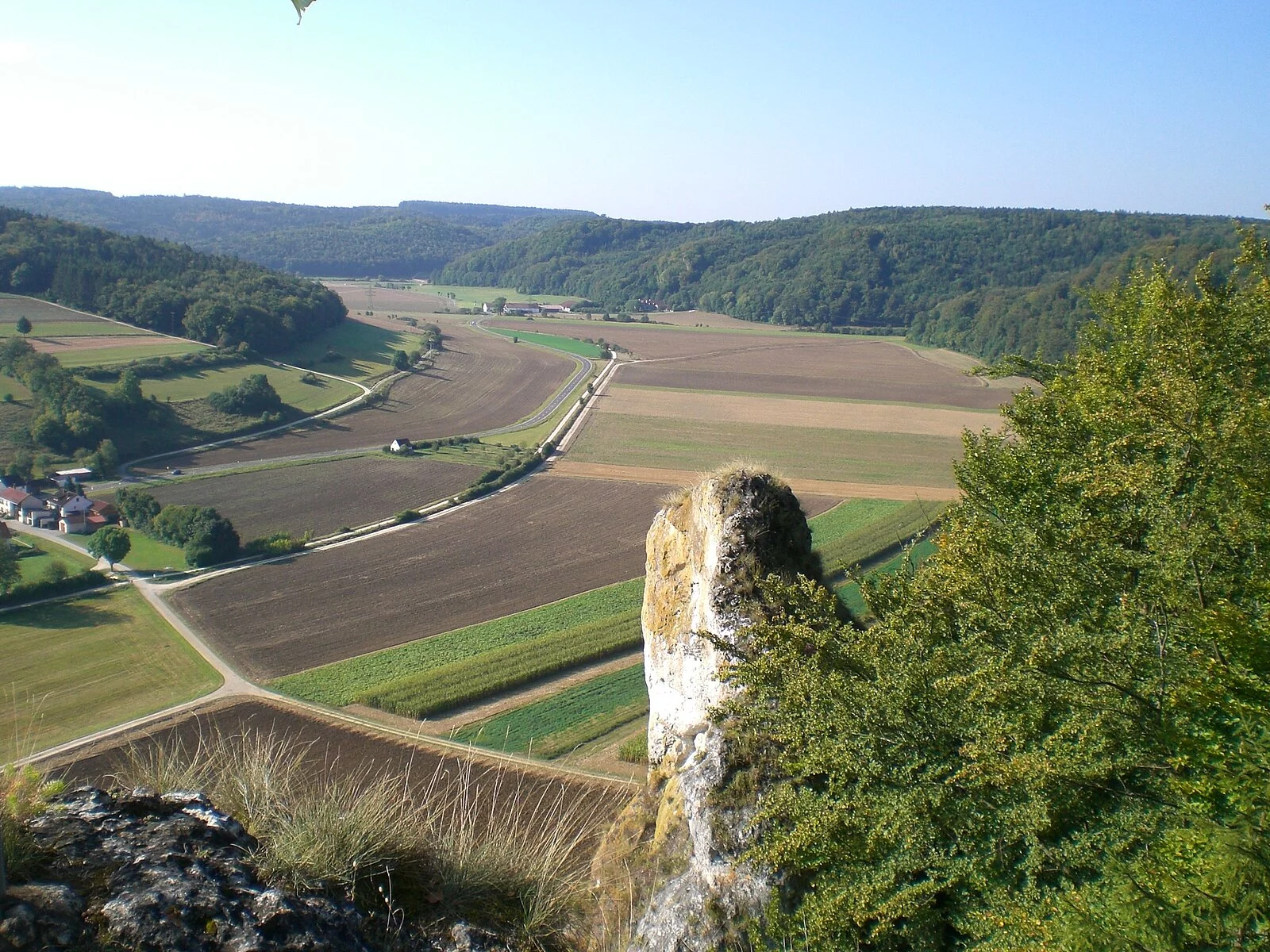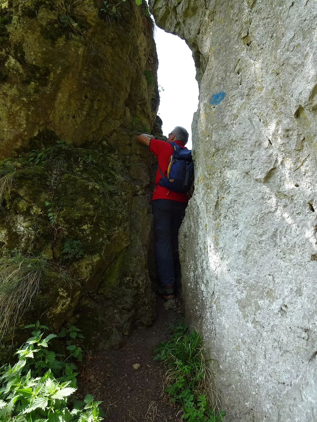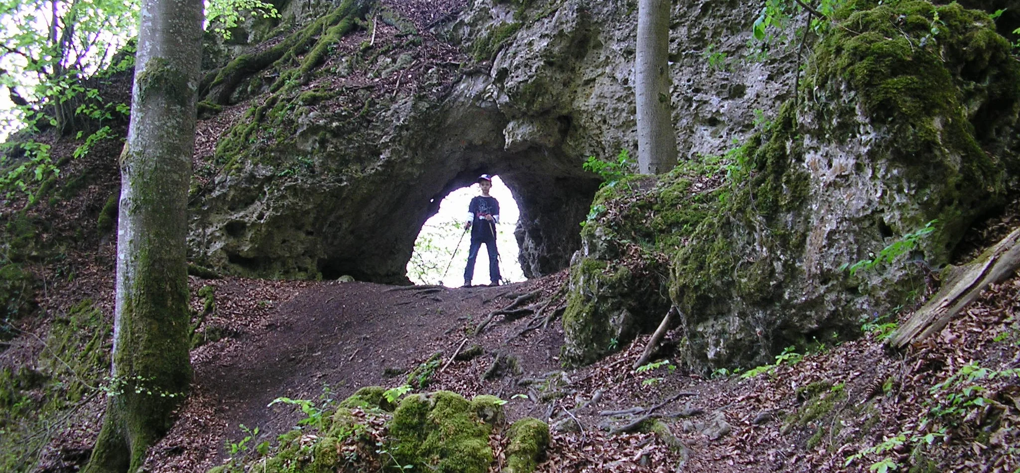 Von dort die Straße und den Radweg überqueren und dem Wegweiser Richtung „Jägersteig“ folgen. Auf einem breiten Forstweg geht es etwa 400 m Richtung Ried, dann zweigt der Jägersteig aufsteigend nach rechts ab (Hinweisschild und Markierung an einer großen Informationstafel beachten). Der fast alpine Steig führt mit geringen Höhenunterschieden am Hang entlang, mit schönen moosbewachsenen Bäumen und beeindruckenden Felsformationen, wobei auch einige schwierigere Passagen zu bewältigen sind, welche mit Stahlseilen oder Holzgeländer gesichert sind. Zwischendurch gibt es immer wieder einmal einen Ausblick nach Ried und über das Wellheimer Trockental. An zwei Stellen ist der Jägersteig für eine kurze Strecke schmal und etwas ausgesetzt, aber völlig unkritisch für den geübten Wanderer. Der Jägersteig endet nach ca. 3,5 Km am Felsentor Beixenstein bzw. etwas unterhalb davon. Der Rückweg zum Parkplatz verläuft am Waldrand unterhalb des Naturwaldreservates Beixenhart. Wem die Wanderung zu kurz ist, der kann schon von Dollnstein aus gehen. Bereits hier findet man Hinweisschilder auf den Jägersteig.