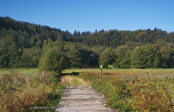 Von Matzenhof bei Simbach verläuft die Schleife in leichtem Anstieg auf die Albhochfläche, bis man bei Ernersdorf den höchsten Punkt erreicht. Von der Hochfläche aus reicht der Blick weit ins Land: Zahlreiche "Zeugenberge", malerische Ortschaften wie Sulzbürg und der Kanal im Tal geben ein reizvolles Bild ab. Schließlich führt uns der Weg wieder hinab ins Tal auf die Stadt Berching zu.