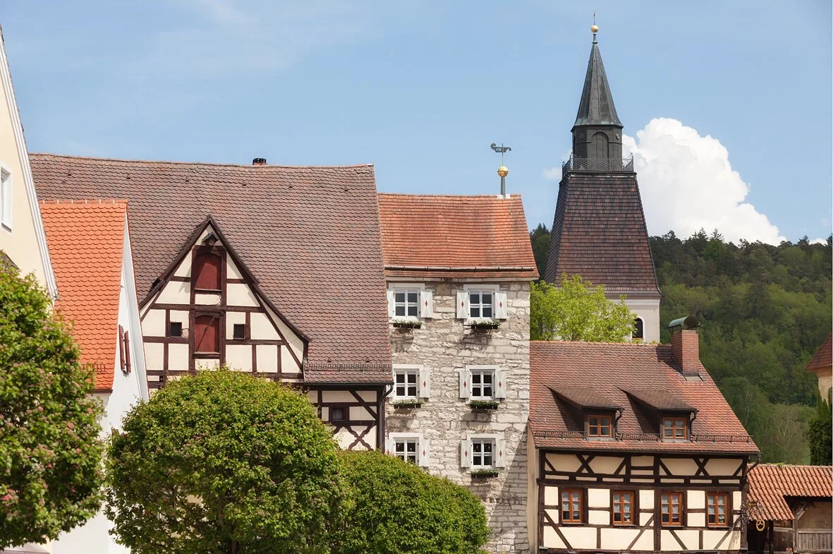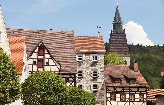 Zwischen dem alten "Ludwigskanal" und dem neuen Rhein-Main-Donau-Kanal gelegen, konnte Berching bis heute sein mittelalterliches Stadtbild erhalten. Auf dem Rückweg geht es wieder auf die Hochfläche über Wegscheid weiter nach Rudersdorf bei Holnstein, wo man wieder auf die Hauptroute des Jurasteigs trifft. Hier können Sie der Hauptroute Richtung Dietfurt weiterlaufen oder Sie gehen entlang der Laber bis Matzenhof wieder zum Ausgangspunkt.