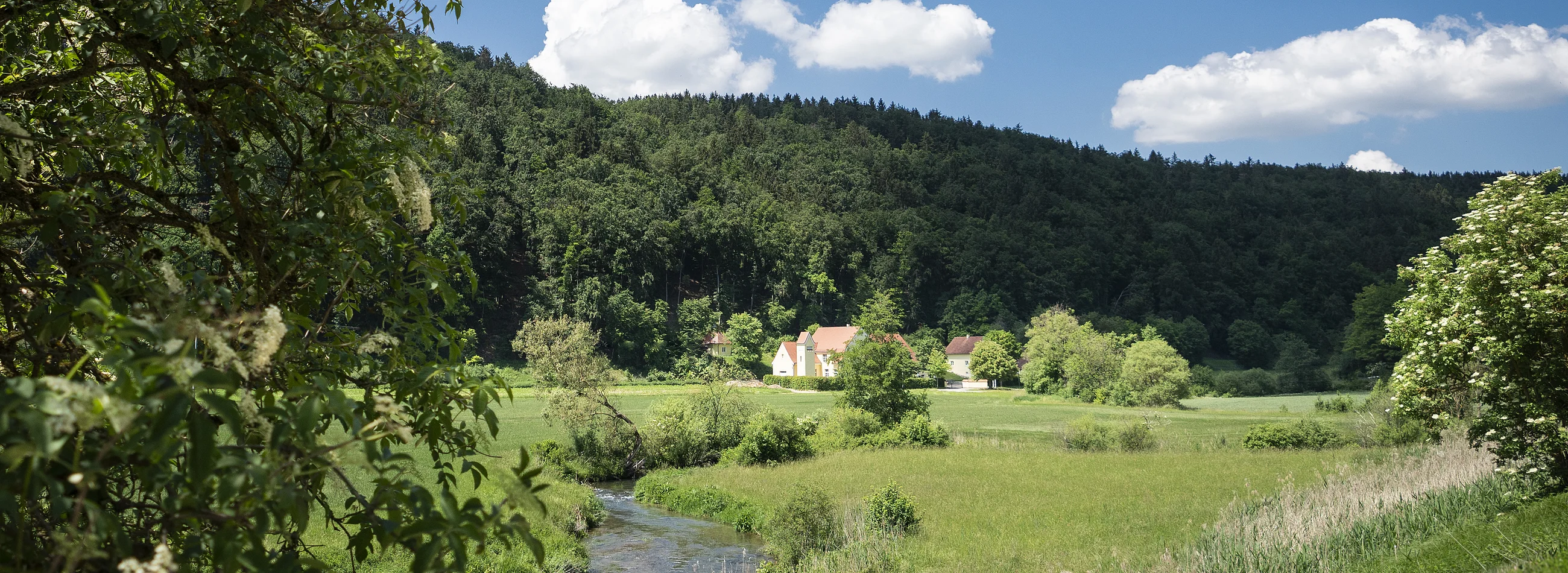 Wir beginnen in Dietfurt am Chinesenbrunnen vor dem Rathaus und gehen zum Franziskanerkloster. Danach biegen wir rechts in den Premerzhofer Weg ein und erreichen das Tal der Weißen Laber. Nach ca. 2 km gehen wir rechts in Richtung Breitenbrunn. Nun wandern wir meist am Waldrand parallel zur Breitenbrunner Laber.