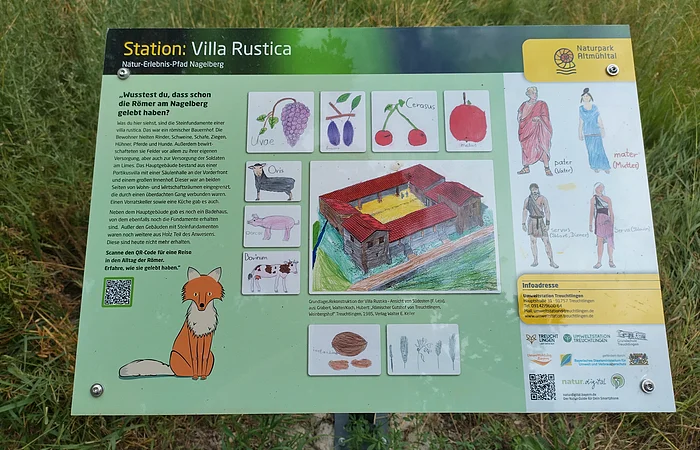 Die Tour startet am Wanderparkplatz am Rotwildgehege unterhalb des Weinbergshofes. Nach einem kurzen Anstieg gelangen Sie zu den Resten der "villa rustica", eines römischen Gutshofs.