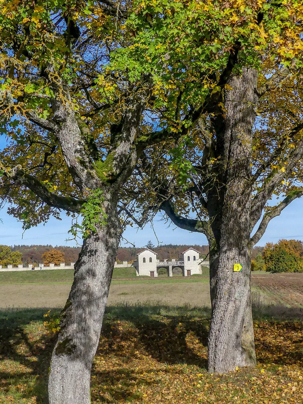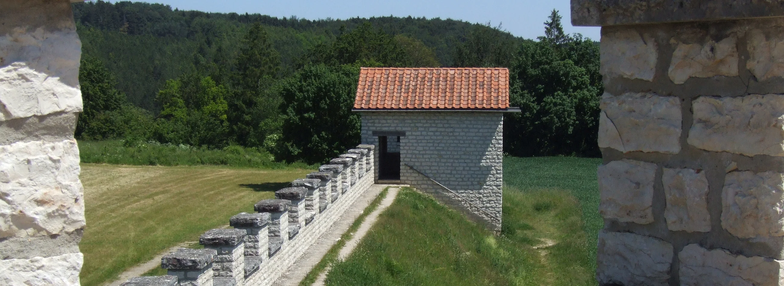 Der Weg führt Richtung Altmühl in den Waldrand, vorbei an einer Kapelle bei "Pietenfeld an der Leiten" und biegt dann nach ca. 900 m links ab durch den Wald bergauf. Ein Stichweg führt Sie durch den Wald links zum Römerkastell Vetoniana. Wir biegen in den Lehrpfad um das Kastellgelände auf der linken Seite ein und umrunden das Areal. Der Weg führt uns auf gleicher Route zum Abzweig (Knotenpunkt) in den Wald zurück. Dort gehen wir links weiter Richtung Pietenfeld. Im weiten Bogen halten wir uns am Waldrand, kommen zum Sendemast und umgehen Pietenfeld in Richtung Bundesstraße. Auf dem Forstweg folgen wir dem Weg hinab ins Tal zum Ausgangspunkt. Auf dem Radwanderweg kommen sie zurück in die Stadt.
