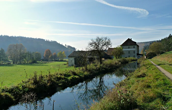 Sie starten in Göhren Dorfmitte am Parkplatz neben dem Spielplatz. Der Straße in Richtung Süden folgen, am Gasthaus Renner vorbei und weiter geradeaus. An der nächsten Kreuzung links abbiegen, dann wieder links hinter den Häusern weiter der Beschilderung folgen. Jetzt rechts abbiegen und abwärts in den Wald hinein bis zum Adlerfleck. Von dort (Hinweisschild) halblinks im Wald ansteigend zum Waldrand laufen. Hier rechts abbiegen, dann wieder links auf einer stillgelegten Teerstraße 200 m weitergehen. Die Straße Göhren-Rothenstein überqueren, dann geradeaus weiter am Waldrand entlang. Rechter Hand können Sie einen Abstecher zum Steinbrunnen (18. Jhr.) unternehmen. An der nächsten Weggabelung rechts halten, geradeaus weiter, dann wieder rechts bis zu einem Holzplatz. Die Teerstraße überqueren und über den Holzplatz weiter zur Abzweigung nach links. Dann durch das Rudertstal absteigen und am Ende des Waldes auf der Teerstraße nach links gehen, nach ca. 80 m direkt nach Suffersheim, an der Kirche vorbei, entlang der Steinriegelquelle, dann die kleine Brücke rechts überqueren und aus dem Ort hinaus Richtung Gunthildis-Kapelle und Flemmühle. Nach den Gebäuden der Mühle links abbiegen und die Straße Treuchtlingen-Suffersheim überqueren Richtung Geislohe. An der ersten Linkskurve den Weg geradeaus steil aufsteigend nach Geislohe gehen. Hier nach rechts durch den Ort gehen. In der Neubausiedlung mit den Wanderwegen Nr. 4/12/17 folgend weiter in den Wald laufen und an einer großen Wanderweg-Kreuzung links halten und auf der „Römerstraße“nach Göhren zurück gehen bis zum Ausgangspunkt.