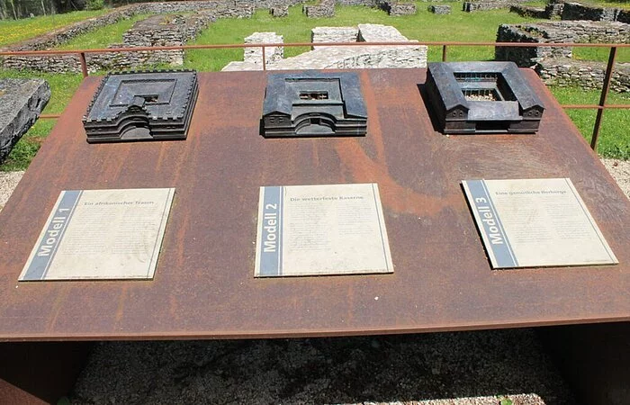 An elf Stationen lässt sich das Leben an und hinter der Grenze des römischen Weltreichs entdecken. Interaktive Stationsmodule, darunter ein Flipper, Drehwürfel und eine Blickrekonstruktion laden zum Mitmachen ein. Zusammen mit plastischen Modellen, u.a. einer Römerstraße und des Burgus, und leicht verständlichen Informationstafeln vermitteln sie auf spielerische und unterhaltsame Weise Wissen über die Römer am Limes. Sowohl Kinder als auch Erwachsene erfahren so Neues über die Antike. Pulex, ein Floh, der die römische Grenze problemlos passieren und Römer und Germanen gleichermaßen beißen kann, begleitet die Besucher als Maskottchen auf den kindgerechten Wegweisern und Stationen.