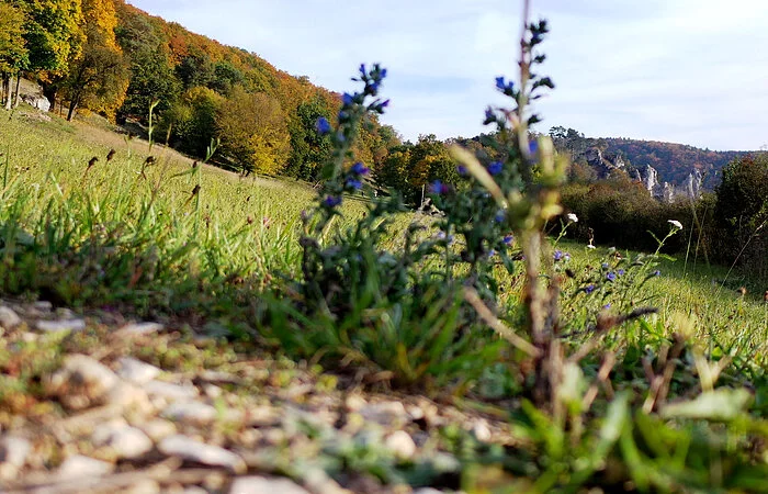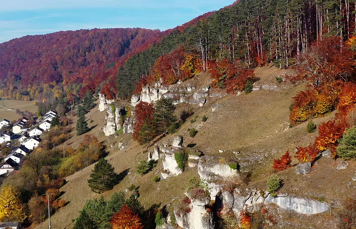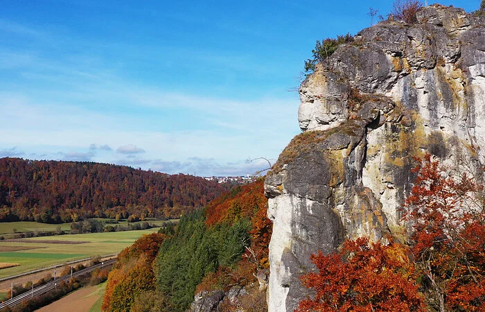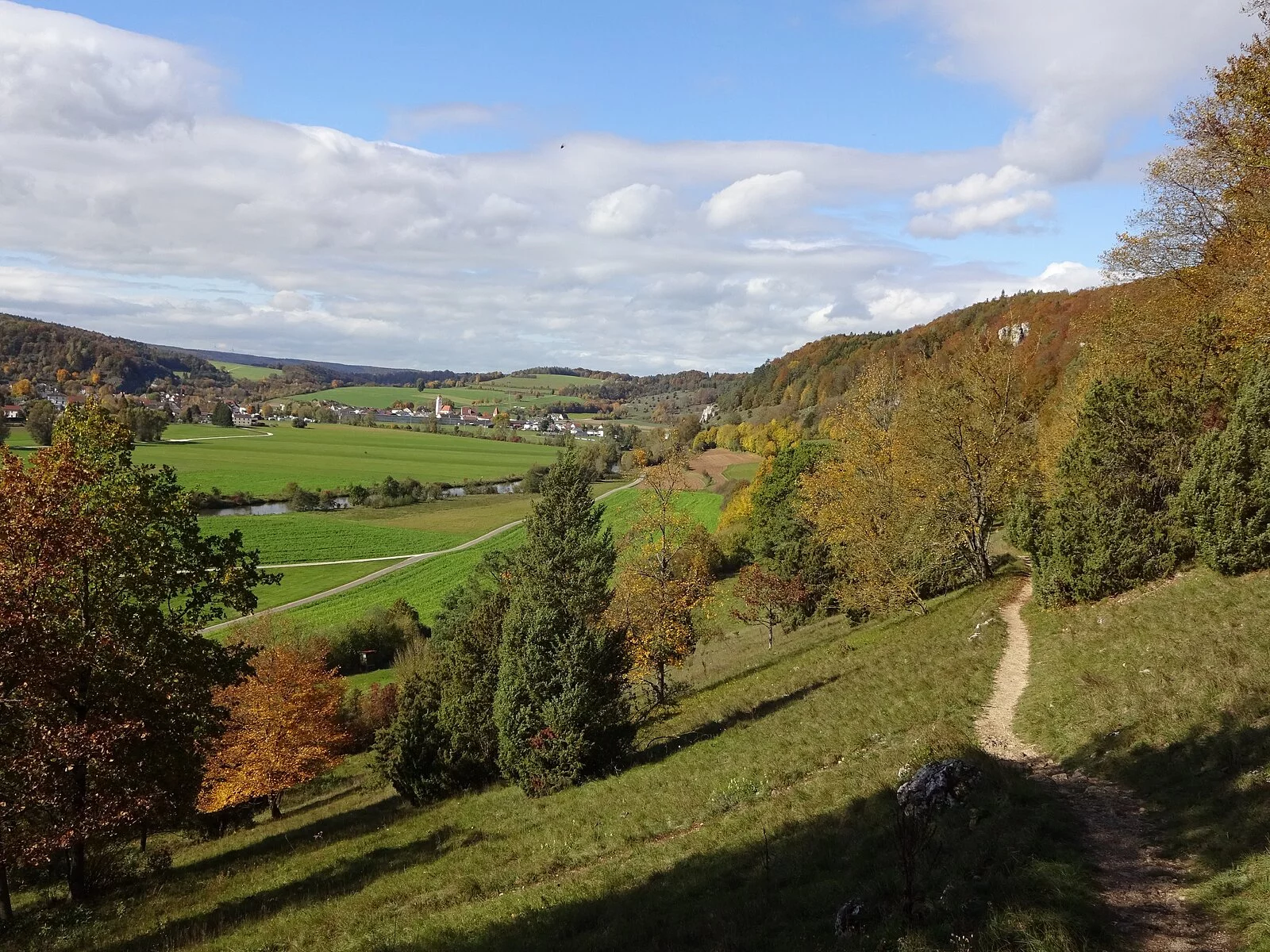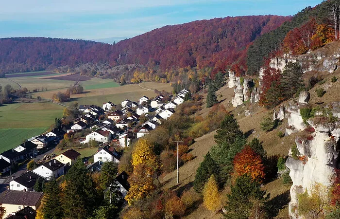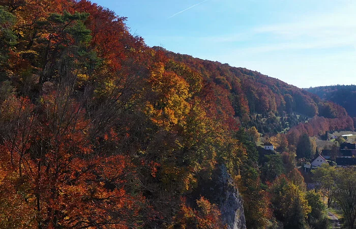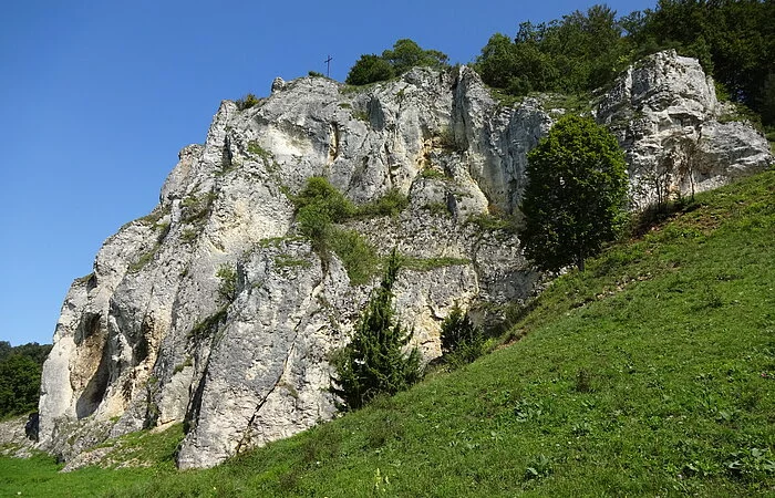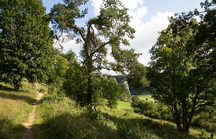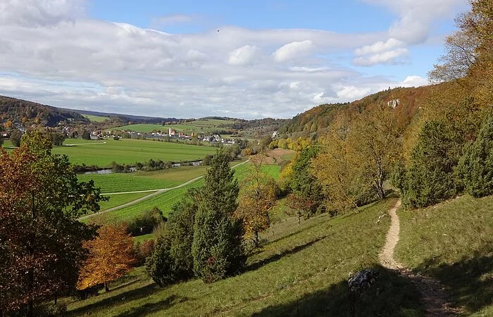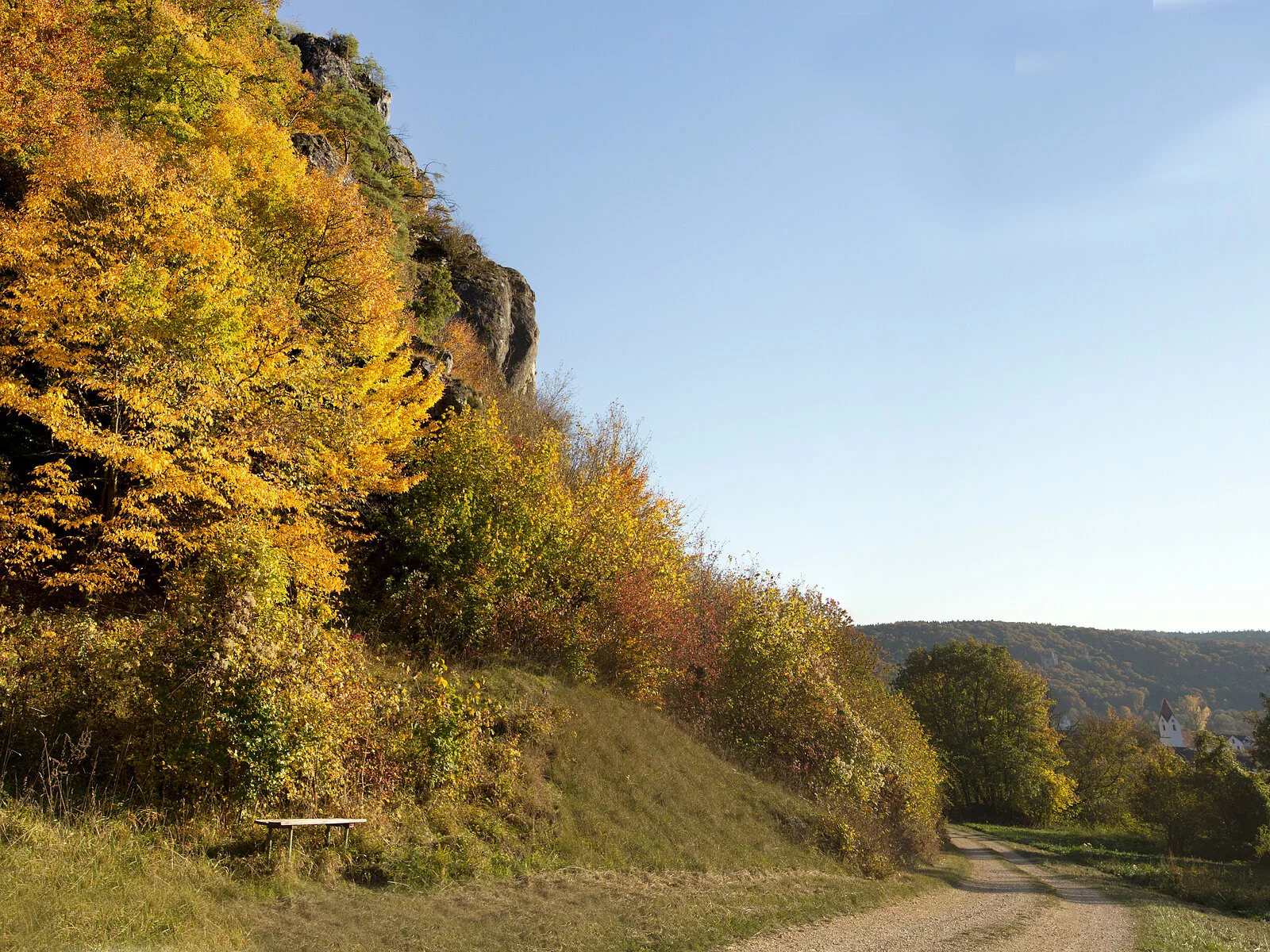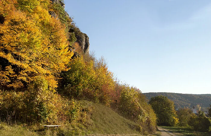 Auf dem Pfad „Kirchenweg“, vorbei an der Kapelle am Burgstein, geht es nach Breitenfurt. Unterwegs lässt sich auf dem Waldsofa am Rande von Breitenfurt die wunderbare Landschaft genießen. Durch den Laubwald führt uns der aussichtsreiche Weg, vorbei an der Attenbrunnermühle und der Schernfelder Brücke, Richtung Obereichstätt. Kurz nach der Brücke verlassen wir den Wald und folgen einem Pfad auf wacholderbestandenen Trockenrasen. Vorbei an schroffen Kalkfelsen erreichen wir Obereichstätt. (Von Dollnstein bis Obereichstätt gehen Sie zugleich auf dem Altmühltal-Panoramaweg.)