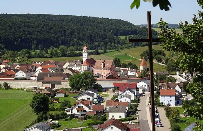 Ausgangspunkt ist der Marktplatz. Von dort geht es auf der Papst-Viktor-Straße nordwärts, bis man in den Burgsteinweg nach rechts einbiegt. Vorbei am Tennisplatz und Naturdenkmal Maderfelsen halten wir uns an der Verzweigung links. Unterhalb des Naturschutzgebietes gehen wir nun der „Sandleite“ entlang. Links von uns breiten sich Wacholderheiden und Magerrasen, rechts von uns das Altmühltal und Felder aus.