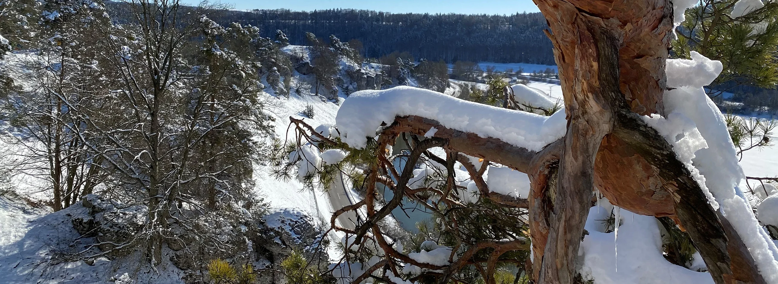 Weg mit steilen, kurzen An- u. Abstiegen auf beiden Altmühlseiten östlich von Solnhofen mit wunderbarem Blick von der „Teufelskanzel" auf die Felsengruppe „12 Apostel", der anschließend ab Eßlingen auf der Markierung des „Altmühltal-Panoramawegs" mit herrlichen Ausblicken auf das Altmühltal bis zur Mehrzweckhalle-Solahalle in Solnhofen weiterführt. Von hier durch den Ort bergab zurück zum Ausgangspunkt am Bahnhof.