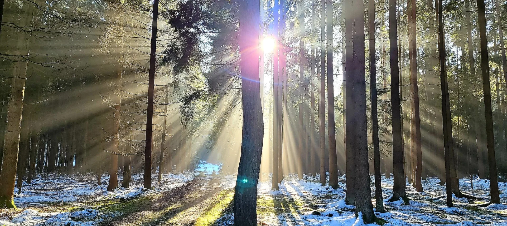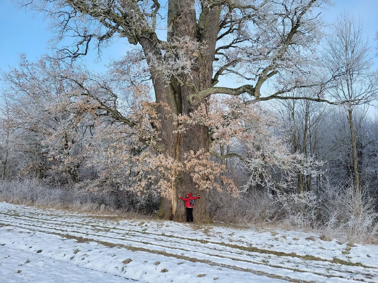 Leicht bergab halten wir uns links, unten angekommen gehen wir links auf der Ortsverbindungsstraße Richtung Hexenagger. Am Ortsanfang, geht’s rechts bergauf zum Naturdenkmal, der gigantischen Tausendjährigen Eiche, von dort aus links auf einem Wiesenweg entlang. Wir überqueren eine Verbindungsstraße und wandern am Waldrand entlang ins Wacholdertal, von dort links zur Hanfstinglmühle, ein Rastplatz mit plätscherndem Wasser der Schambach lädt zur Pause ein.