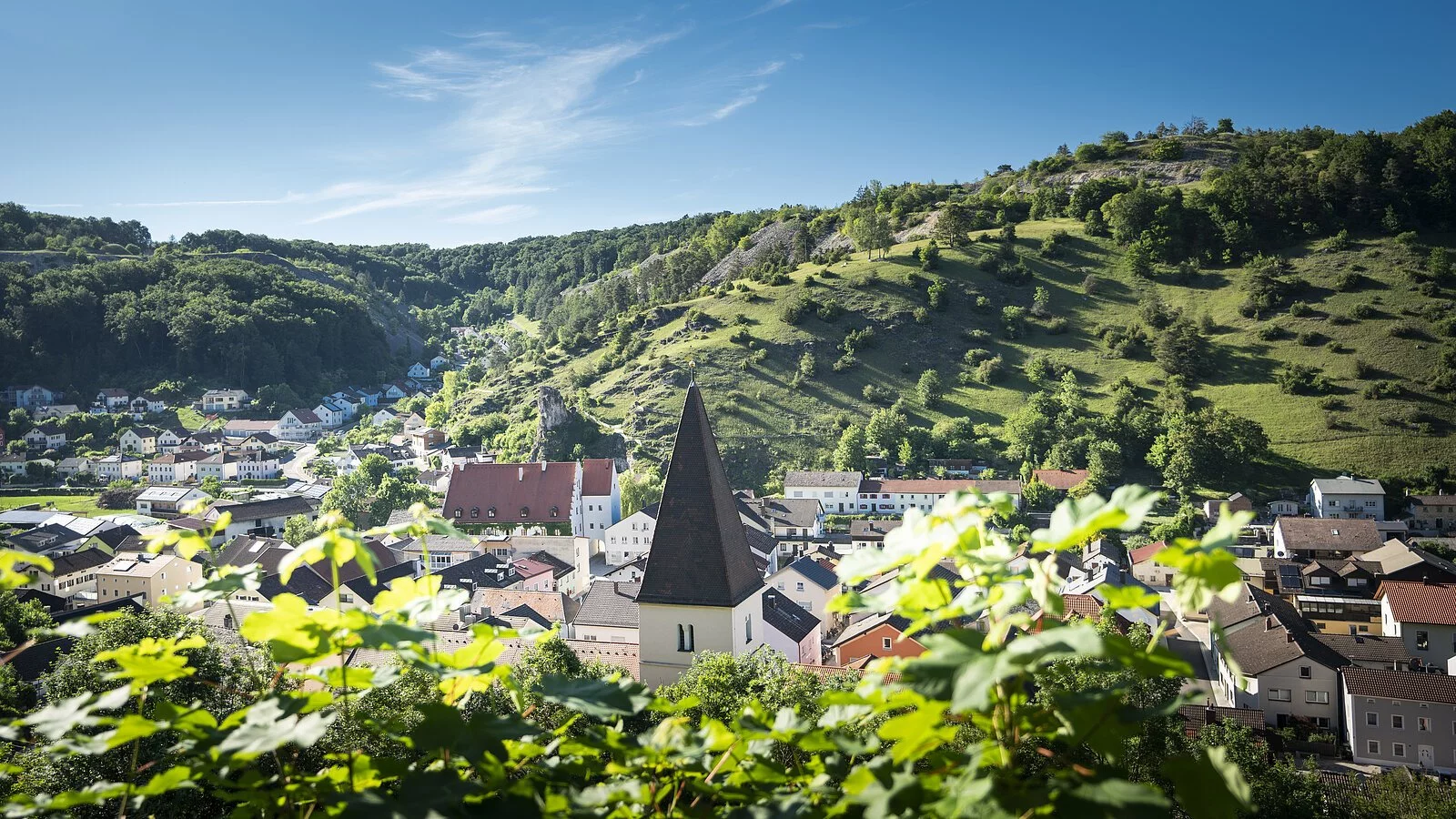 Über eine Wacholderheide geht es danach hinunter, über die Altmühl und hinauf zum Maxberg, wo der Altmühltal-Panoramaweg das Betriebsgelände des Solenhofener Aktienvereins streift, wo die berühmten Plattenkalke verarbeitet werden. Anschließend genießt man einen schönen Blick auf das Gailachtal mit dem Etappenziel Mörnsheim.