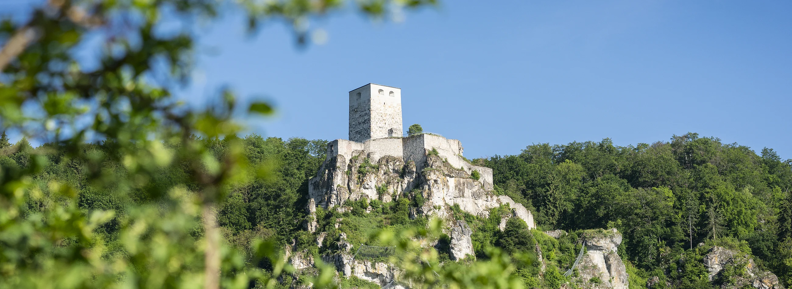 Zwischendurch laden immer wieder Sitzbänke ein, die schönen Ausblicke auf die Burg Wellheim, den Dohlenfelsen und Galgenberg zu genießen. Entlang Schutter, aber auch durch abwechslungsreiches Waldgebiet führt uns der Weg.