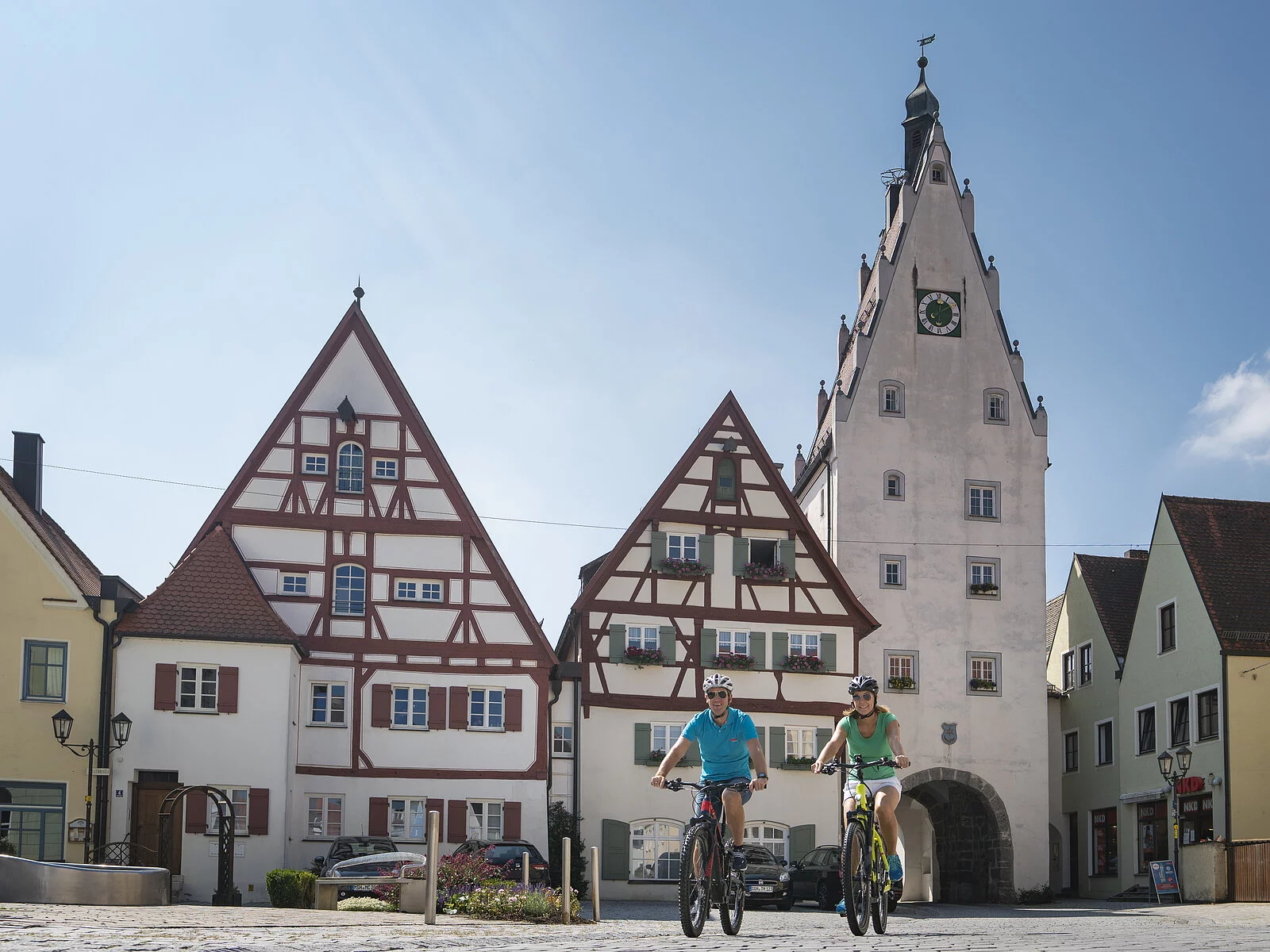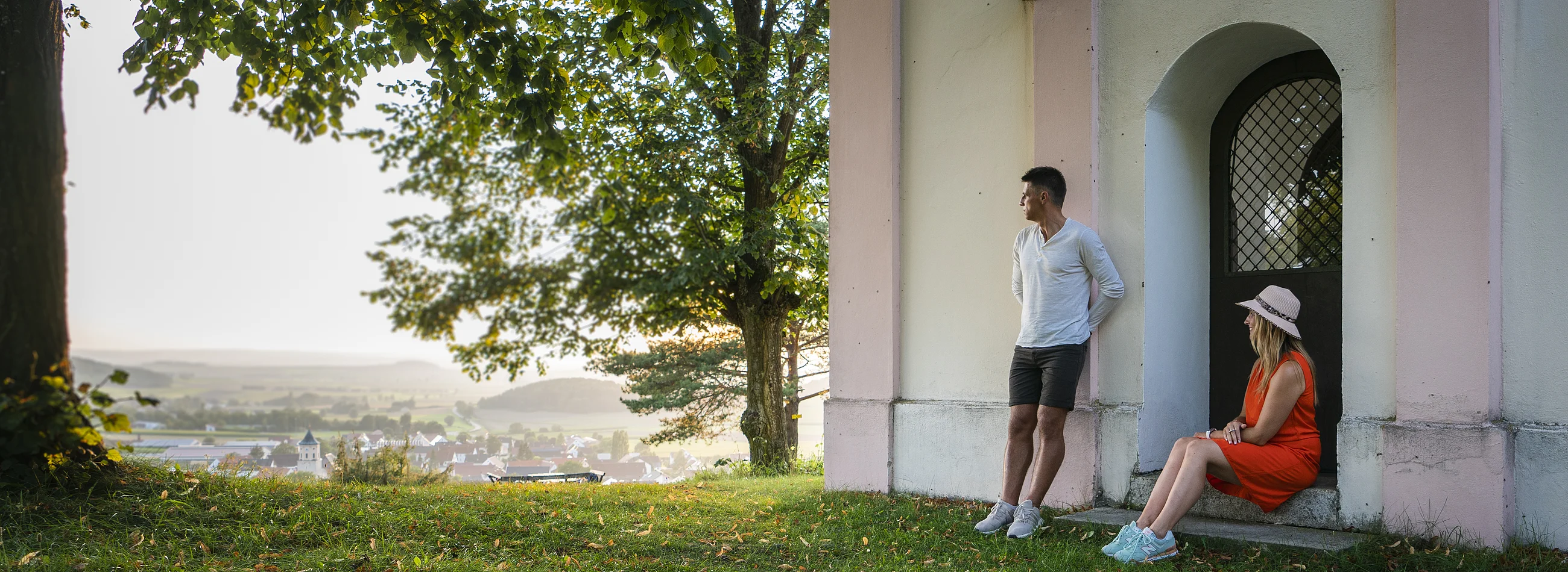 Von Wellheim aus führt der Wallfahrerweg in Richtung Monheim zur Spindeltalkirche. Diese wurde in der zweiten Hälfte des 15. Jahrhunderts erbaut. Die 1989 wieder eingeweihte, gesicherte und ergänzte Ruine zeugt von den früheren Grenzstreitigkeiten. Nicht zuletzt ging es dabei um die Wallfahrtseinkünfte. Die Unstimmigkeiten zwischen den Pfarreien Rögling (Diözese Eichstätt) und Wellheim (Diözese Augsburg) führten schließlich 1783 zur Demolierung. Heute ist wieder religiöses Leben zurückgekehrt: Die romantisch gelegene Kirche ist ein gern besuchter Wallfahrtsort. Die dort 1931 ausgegrabene Madonna aus Sandstein steht heute in der Kirche im nahen Ensfeld. Von der Spindeltalkirche führt der Weg weiter auf den Kapellberg und durch Trockenrasen. Am Etappenziel Monheim lohnt sich ein kurzer Rundgang durch die Altstadt mit ihren beiden historischen Tortürmen und der spätgotischen Stadtpfarrkirche St. Walburg.