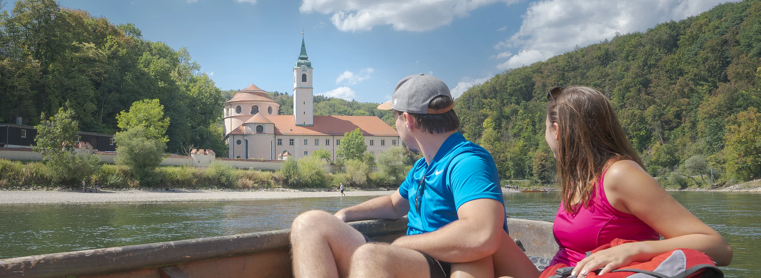 Die Tour startet an der Schiffsanlegestelle Donau in Kelheim. Auf dem Altmühltal-Panoramaweg verlässt man die Stadt und erreicht bald die Einsiedelei Klösterl mit einzigartiger Felsenkirche. Weiter geht es in den Wald und bergauf, bis man auf dem Aussichtspunkt schon einen Blick auf Kloster Weltenburg werfen kann, das hinter der Weltenburger Enge an der Donau liegt. Nach dem Abstieg setzt man in einer traditionellen Zille oder mit der Seilfähre (ca. 150 m weiter flussaufwärts) über zu der bekannten Benediktinerabtei mit ihrer kunsthistorisch bedeutenden Asamkirche und der über 1000-jährigen Brautradition. Im gemütlichen Biergarten hat man Gelegenheit, die süffigen Klosterbiere zu verkosten. Zurück nach Kelheim könnte man auch mit dem Schiff durch den spektakulären Donaudurchbruch fahren; der Weg führt aber durch das Kloster und bergauf zur Frauenbergkirche, die auf den Fundamenten eines römischen Minervaten-Tempels steht. Durch den Wald und über Wiesen geht es weiter. Am "Wieserkreuz" genießen die Wanderer die Aussicht auf das Donautal und die Befreiungshalle. Dann geht es steil bergab; über die Maximiliansbrücke gelangt man wieder nach Kelheim.