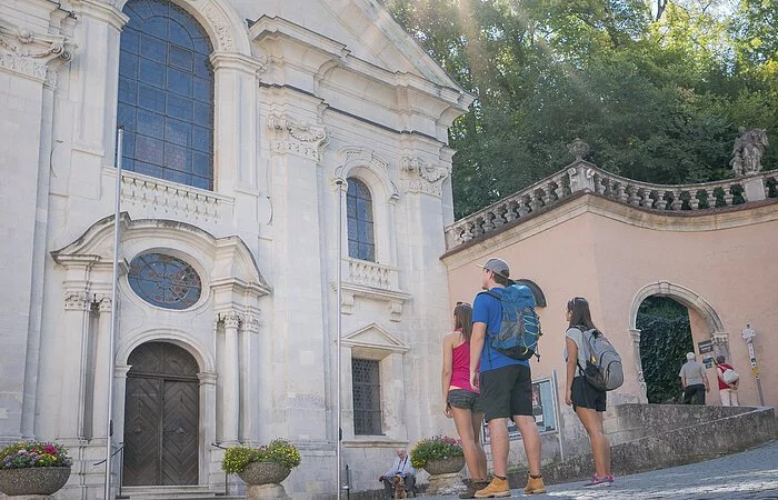 Die Tour startet an der Schiffsanlegestelle Donau in Kelheim. Auf dem Altmühltal-Panoramaweg verlässt man die Stadt und erreicht bald die Einsiedelei Klösterl mit einzigartiger Felsenkirche. Weiter geht es in den Wald und bergauf, bis man auf dem Aussichtspunkt schon einen Blick auf Kloster Weltenburg werfen kann, das hinter der Weltenburger Enge an der Donau liegt. Nach dem Abstieg setzt man in einer traditionellen Zille oder mit der Seilfähre (ca. 150 m weiter flussaufwärts) über zu der bekannten Benediktinerabtei mit ihrer kunsthistorisch bedeutenden Asamkirche und der über 1000-jährigen Brautradition. Im gemütlichen Biergarten hat man Gelegenheit, die süffigen Klosterbiere zu verkosten. Zurück nach Kelheim könnte man auch mit dem Schiff durch den spektakulären Donaudurchbruch fahren; der Weg führt aber durch das Kloster und bergauf zur Frauenbergkirche, die auf den Fundamenten eines römischen Minervaten-Tempels steht. Durch den Wald und über Wiesen geht es weiter. Am "Wieserkreuz" genießen die Wanderer die Aussicht auf das Donautal und die Befreiungshalle. Dann geht es steil bergab; über die Maximiliansbrücke gelangt man wieder nach Kelheim.